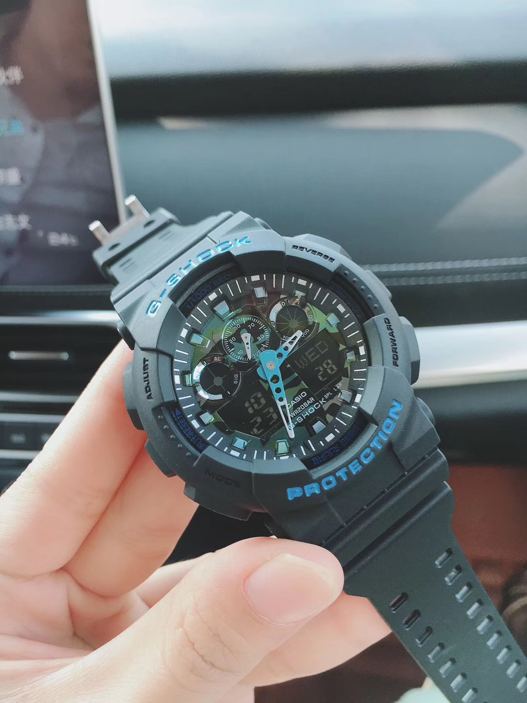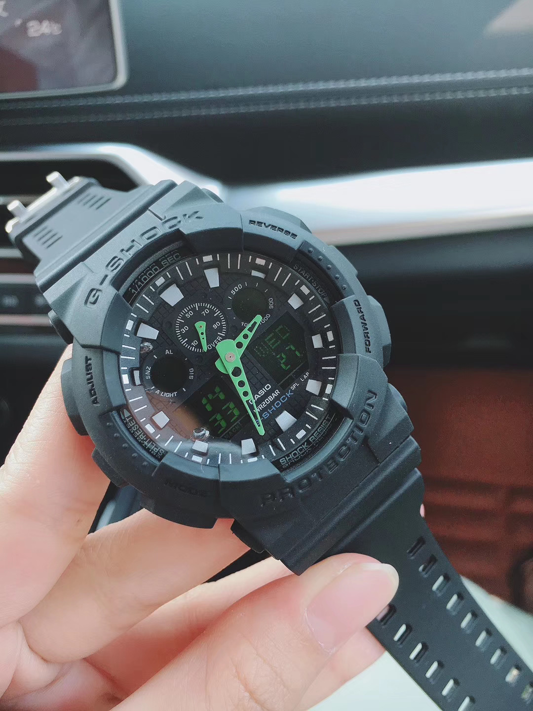 多重功能一应俱全,防震防磁,200M防水,自动LED照明,秒表(1/1000秒秒表),世界时间(48个城市),每日闹铃, 整点响报,间歇响报。五色上新,尺寸51mm,保修一年。