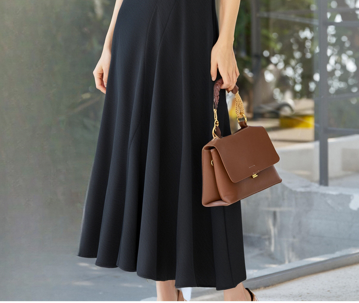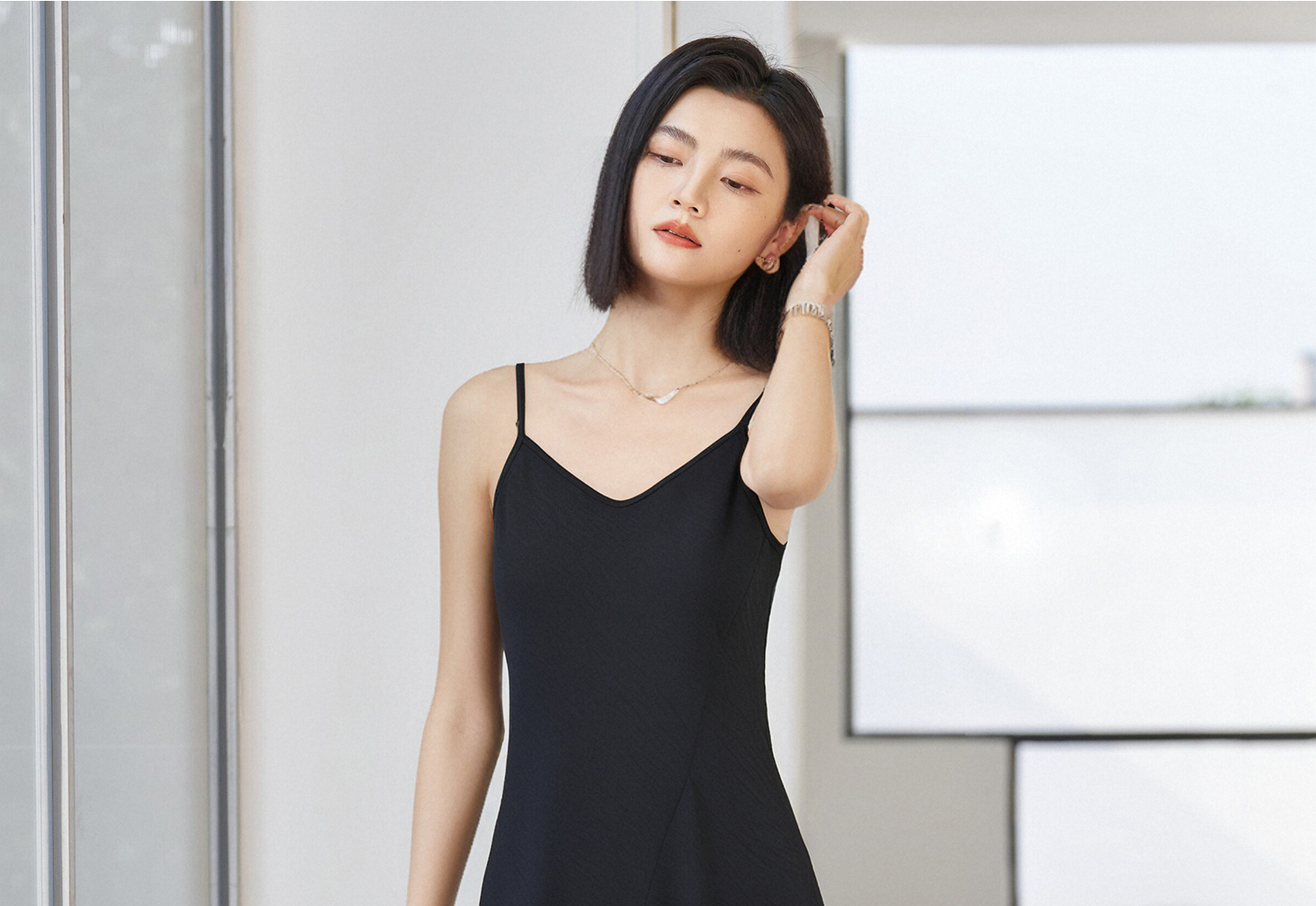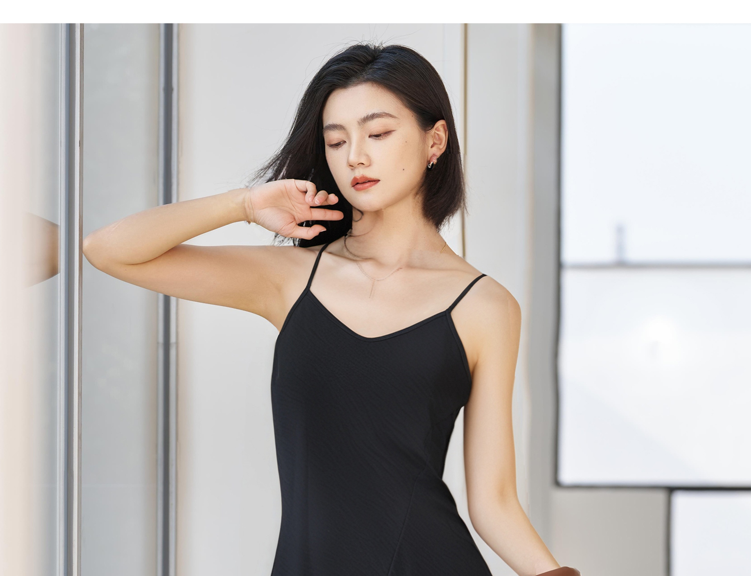 剩S/XL/XXL 米思阳2025秋季新款优雅纯色吊带连衣裙百搭修身中长款内搭大摆裙女5842
