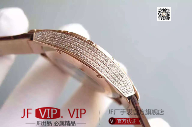 TF伯爵POLO满天星系列 进口9015自动机械机芯,原装扣,精钢表壳上以及表盘里全部人工镶嵌锆石,男表,透底,小牛皮表带