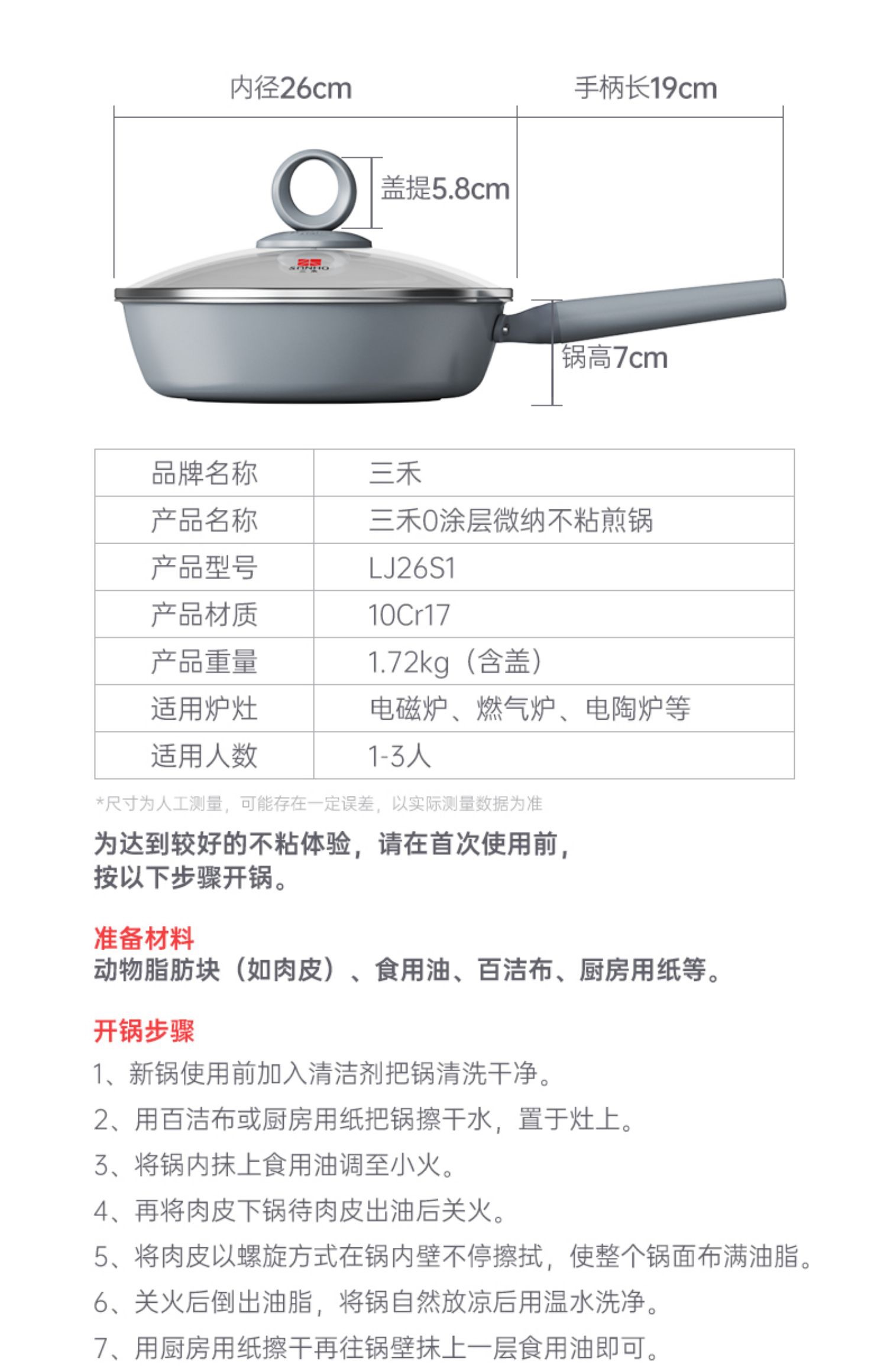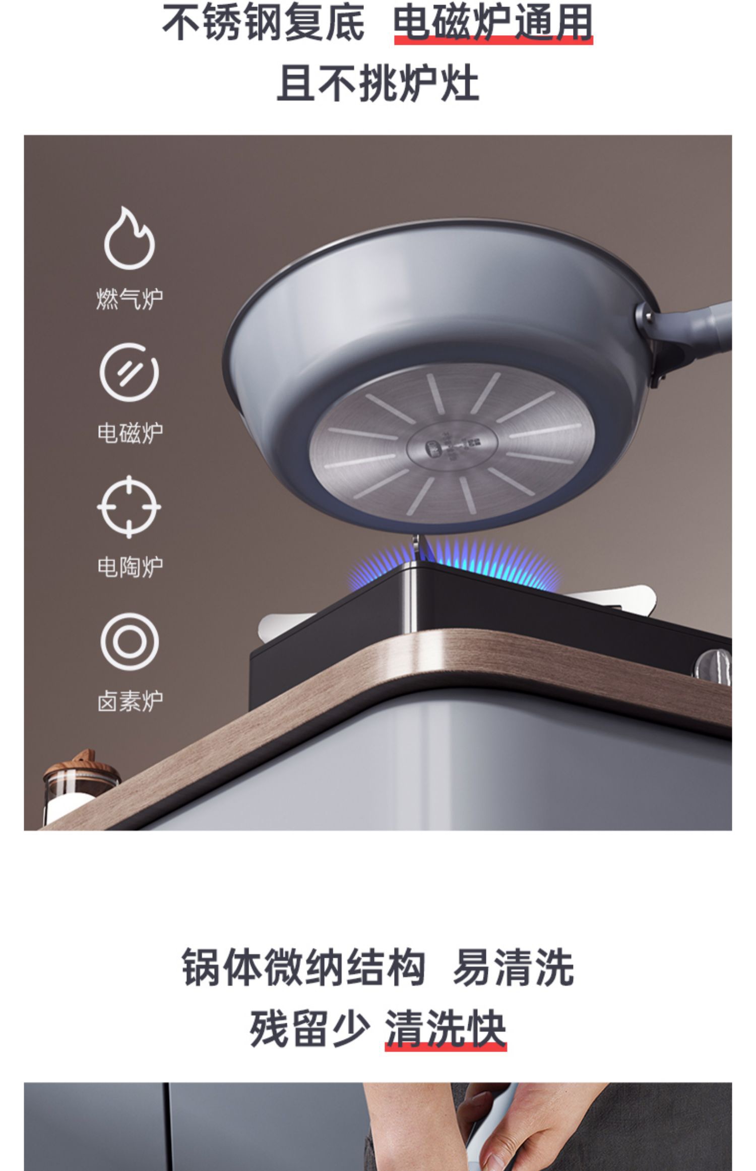 三禾0涂层微纳不粘煎锅 不粘平底锅家用牛排煎锅煎饼一体锅具
