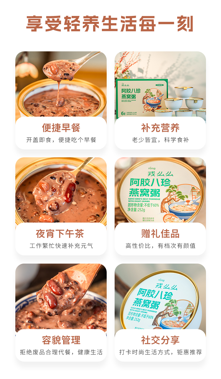 【阿胶八珍燕窝粥】甄选8种食材+手作阿胶+燕窝,真材实料营养丰富,开盖即食,可微波炉【AA】
