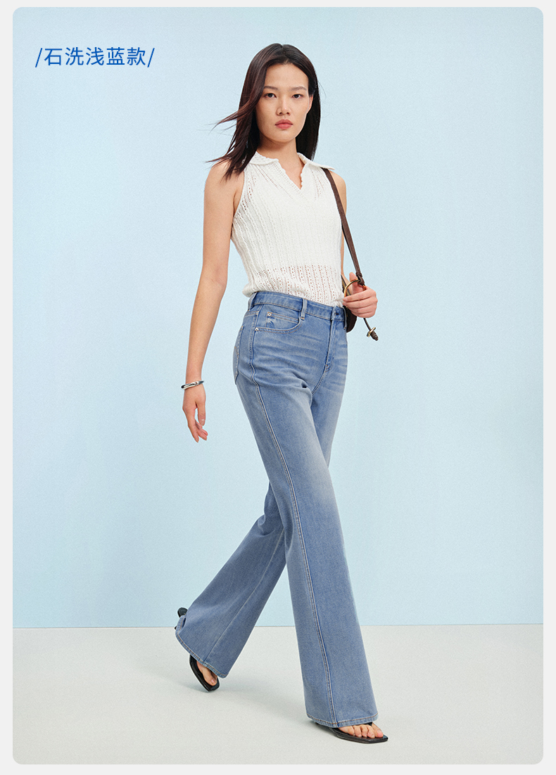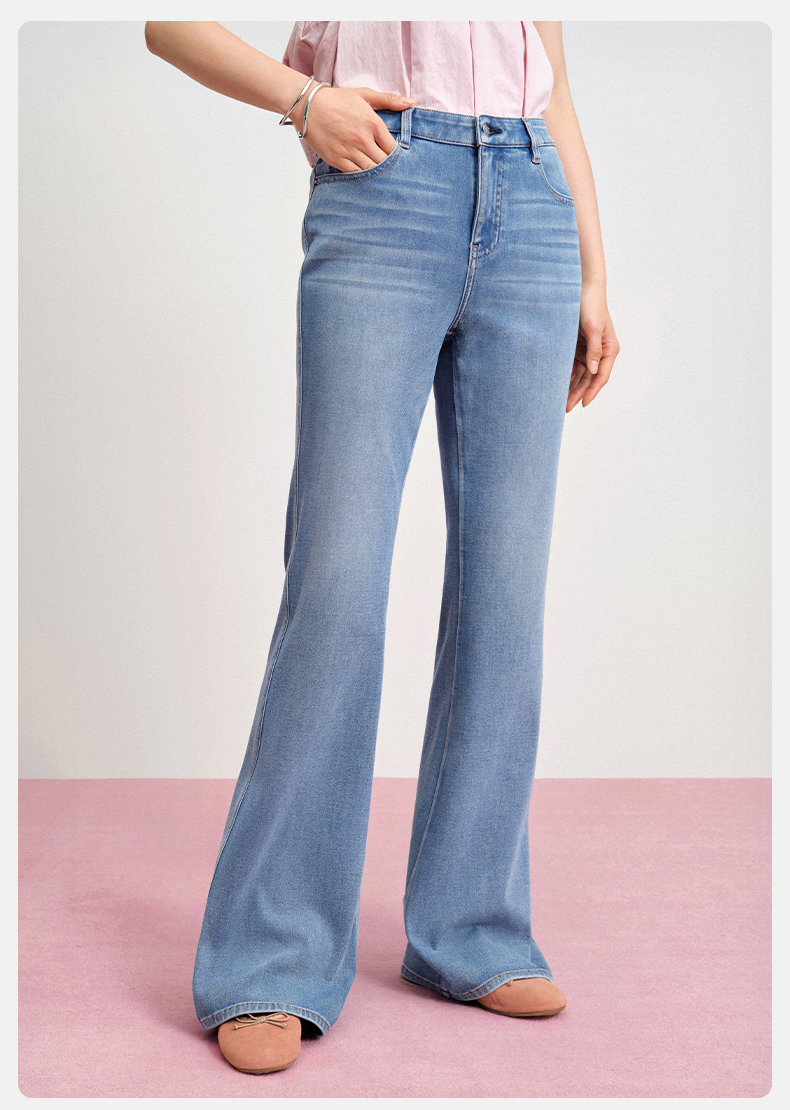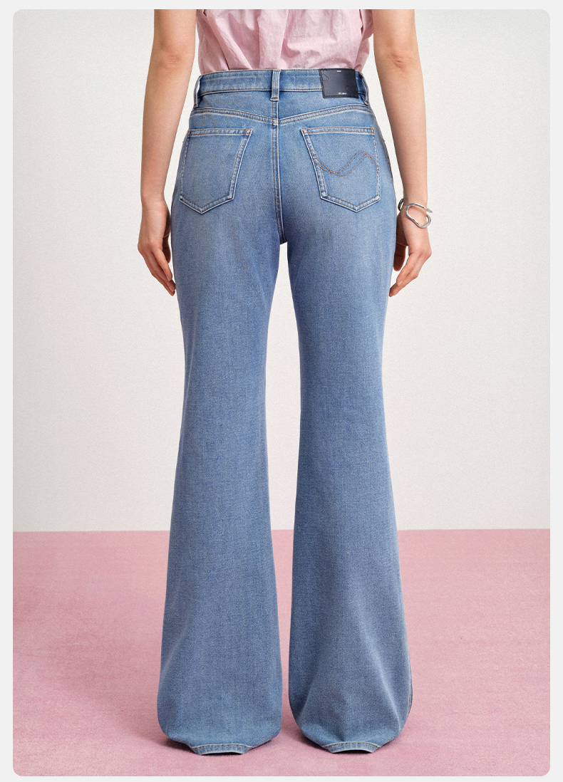 【夏季天丝显瘦喇叭】simplepieces夏新款SPS牛仔裤四面弹拖地裤