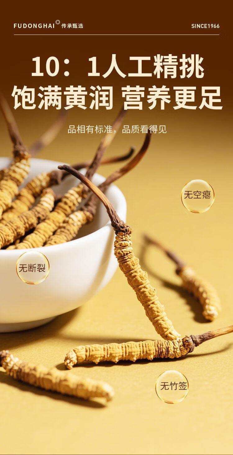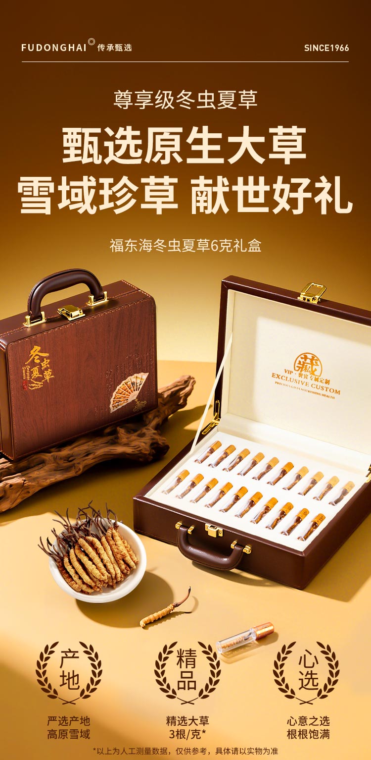 福东海 冬虫夏草礼盒 甄选高品质干虫草 补品过新年货送长辈 【特优20根】6克冬虫夏草礼盒