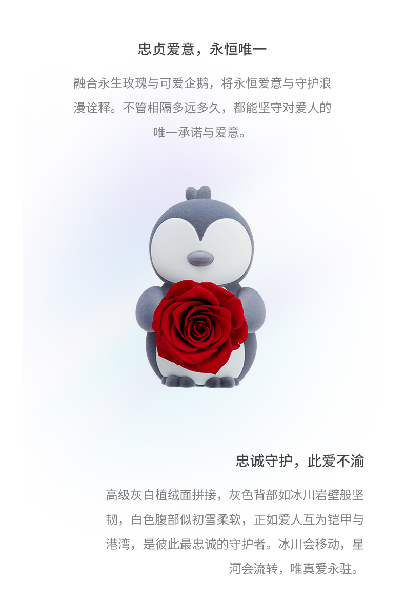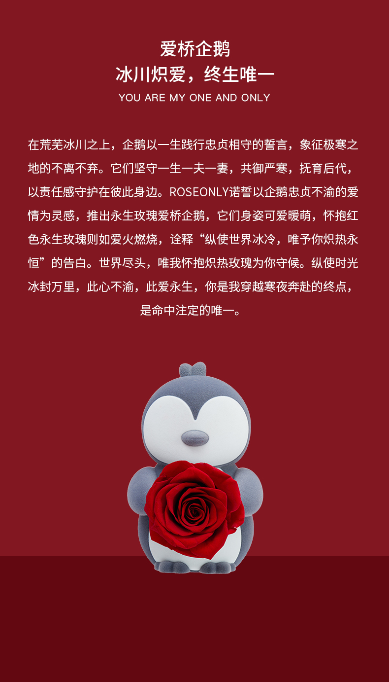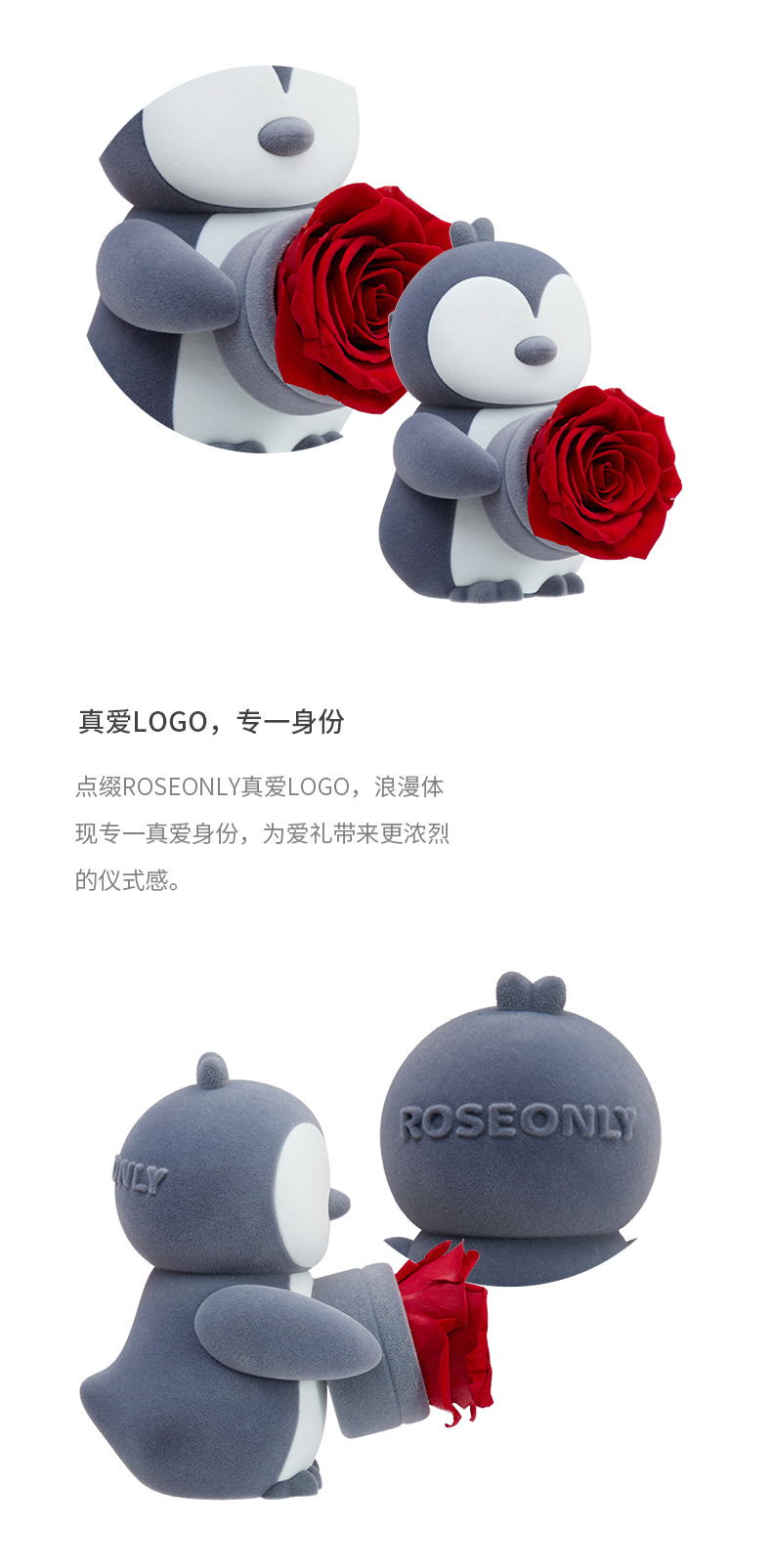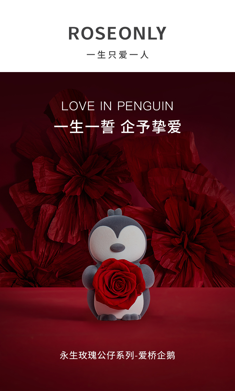 【新品爱礼】ROSEONLY诺誓 永生玫瑰 公仔系列 爱桥企鹅 送朋友 情人节礼物