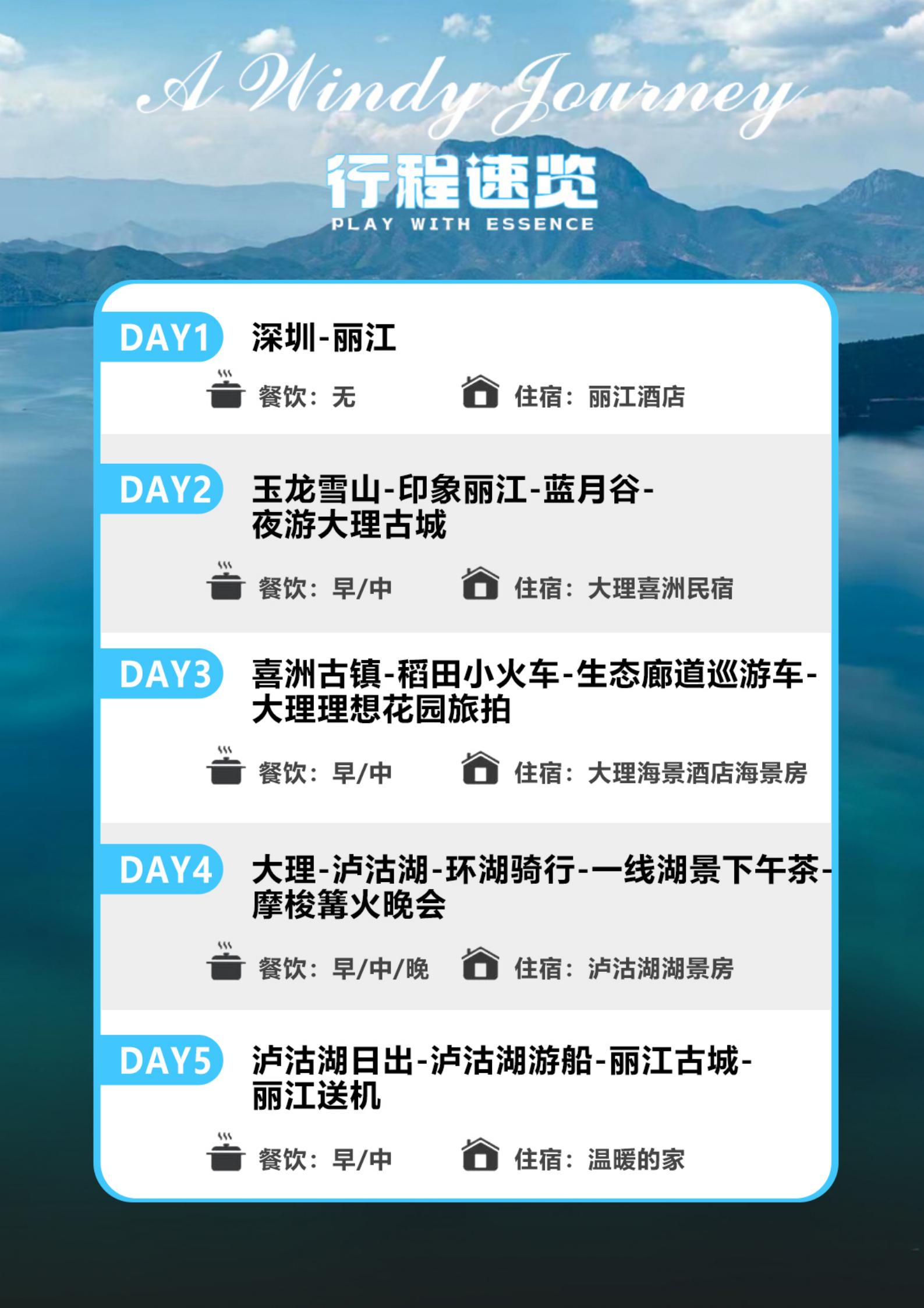 <云南丽江+大理+泸沽湖5天双飞10人纯玩小团>玉龙雪山、印象丽江、蓝月谷、大理古城、喜洲古镇、喜洲小火车、洱海生态廊道、理想花园旅拍、泸沽湖-环湖骑行、摩梭篝火晚会、泸沽湖游船、丽江古城