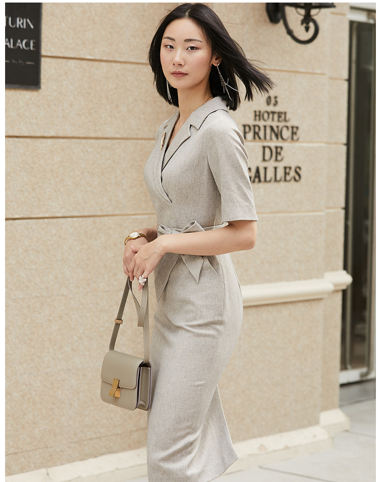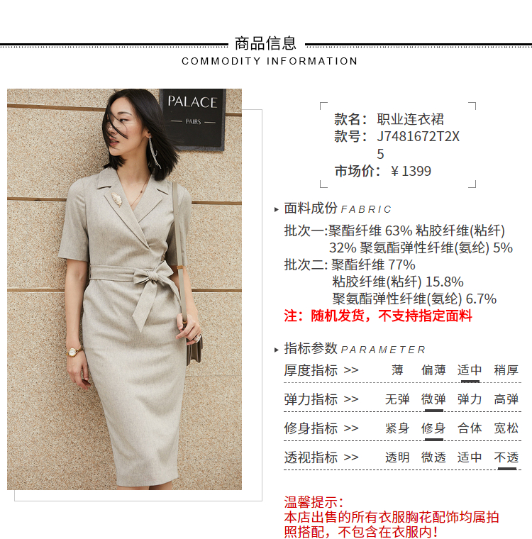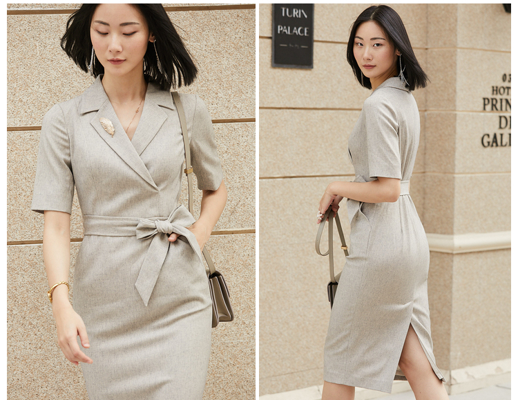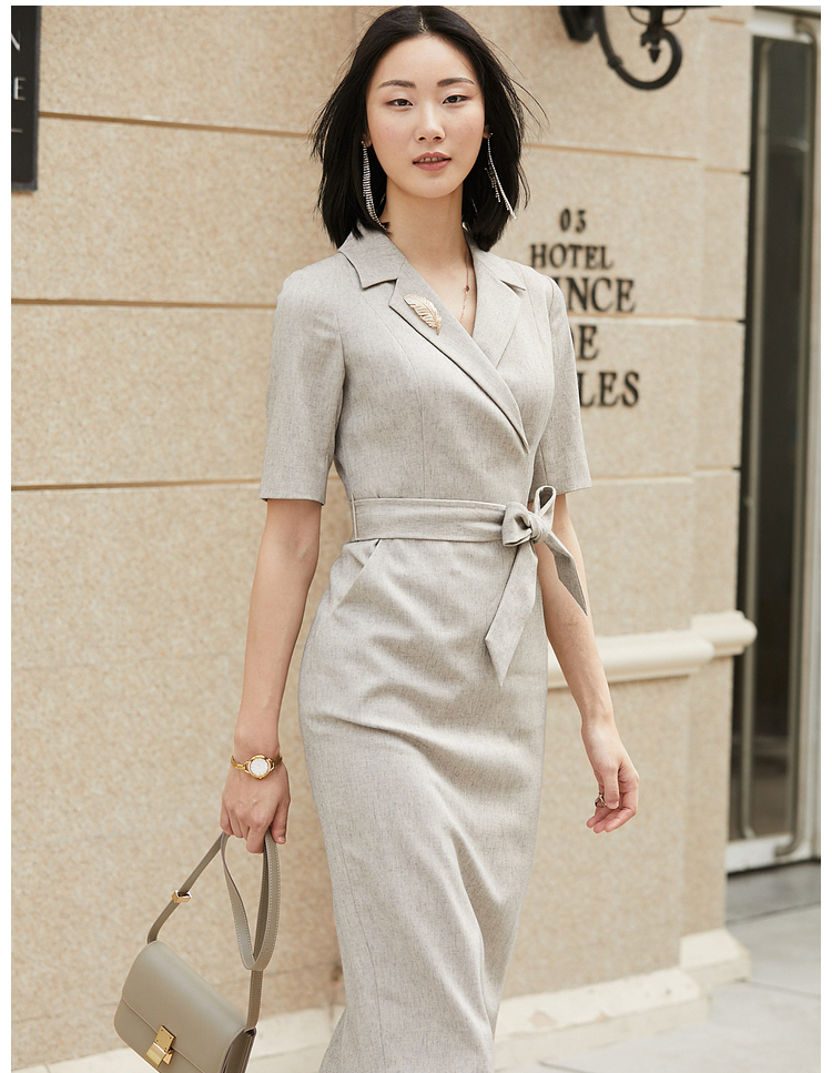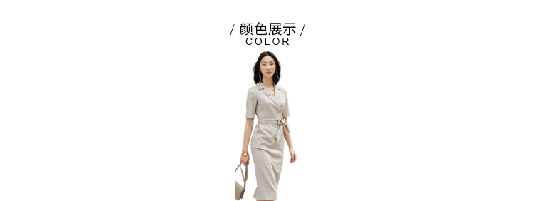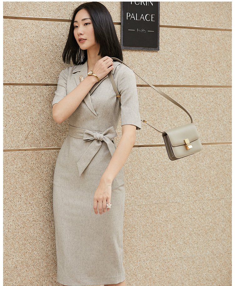 “燕麦奶咖”J7481672T2X5颈袖添香春季气质女神范收腰西装裙职场装连衣裙女西服裙