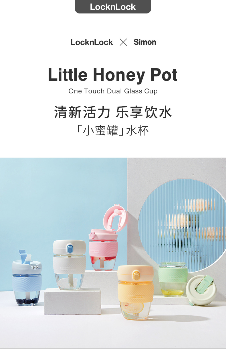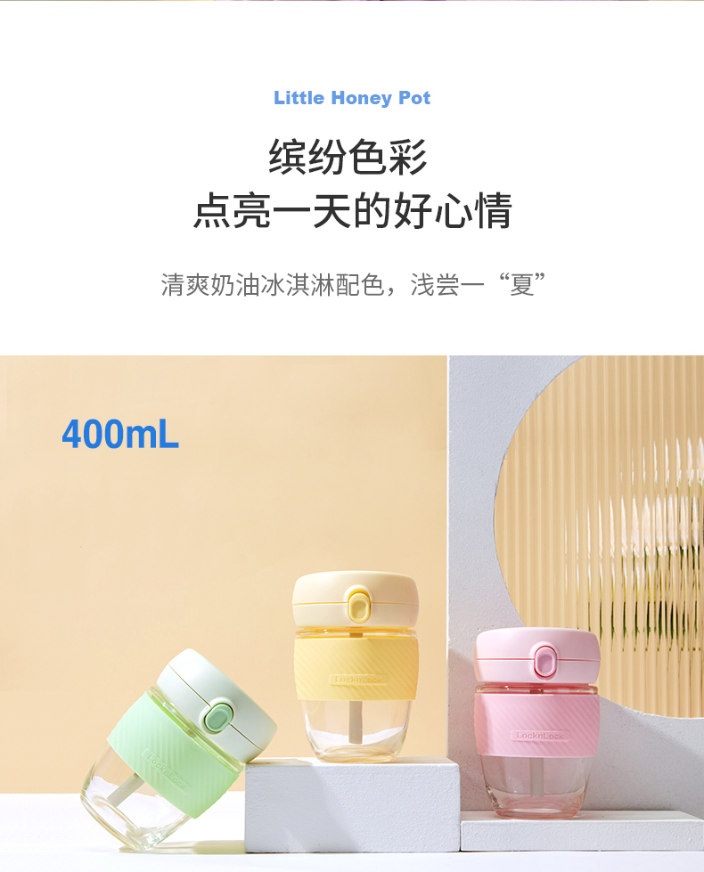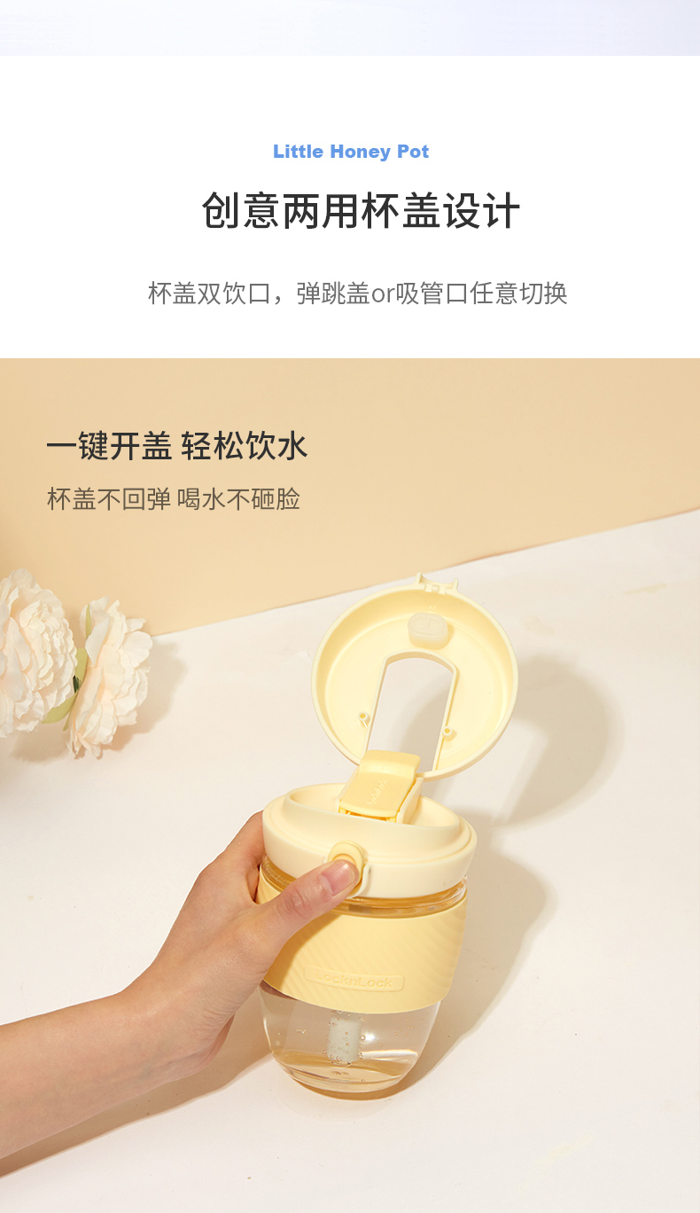 龚俊同款乐扣乐扣小蜜罐玻璃水杯带吸管女生咖啡牛奶杯子简约情侣