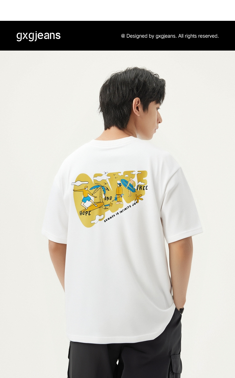 gxg.jeans男装 多色后背趣味印花潮流时尚圆领短袖t恤 25年夏热卖