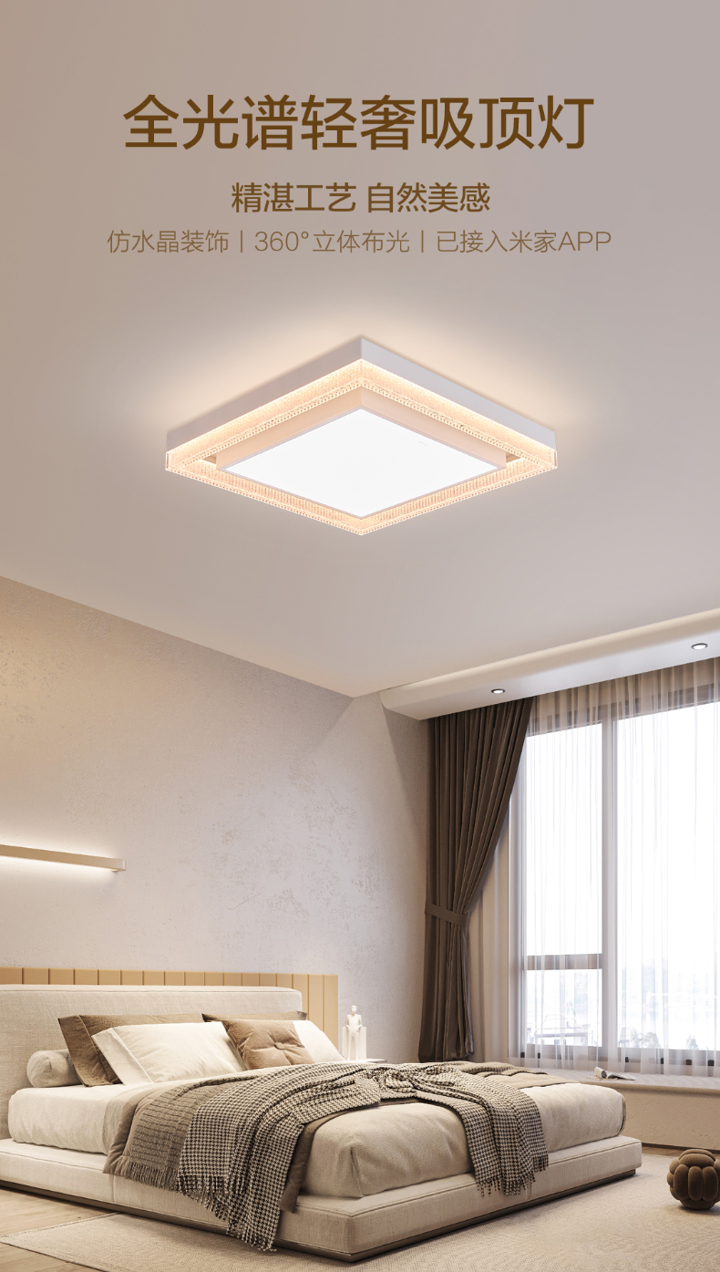 欧普(OPPLE)轩影卧室设计美学方形仿水晶光效吸顶灯