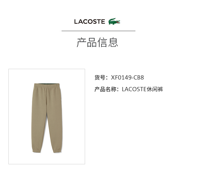 【海南专供价】LACOSTE法国鳄鱼女装百搭束脚运动裤休闲裤卫裤XF0149-98