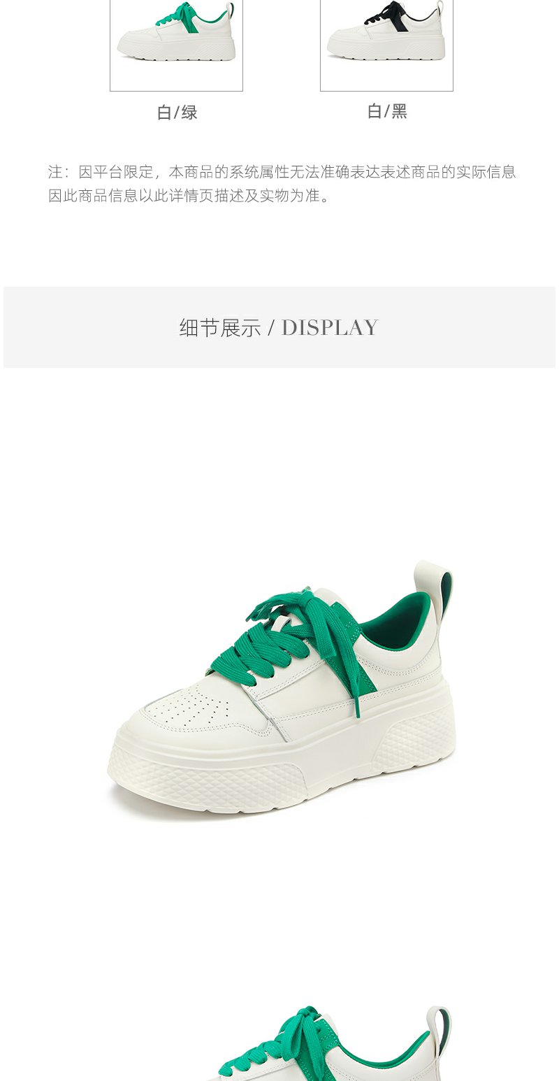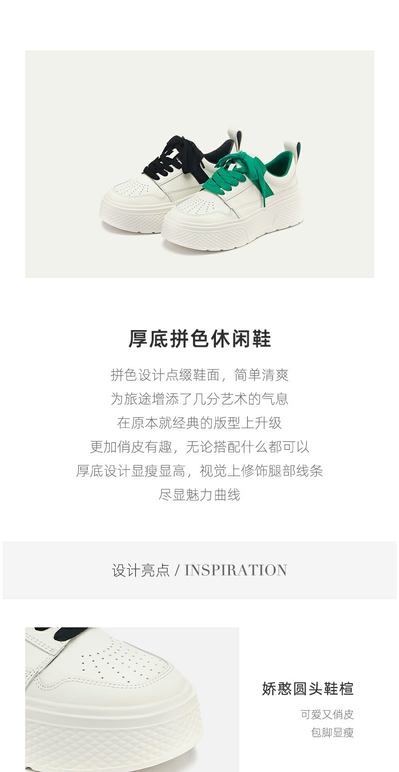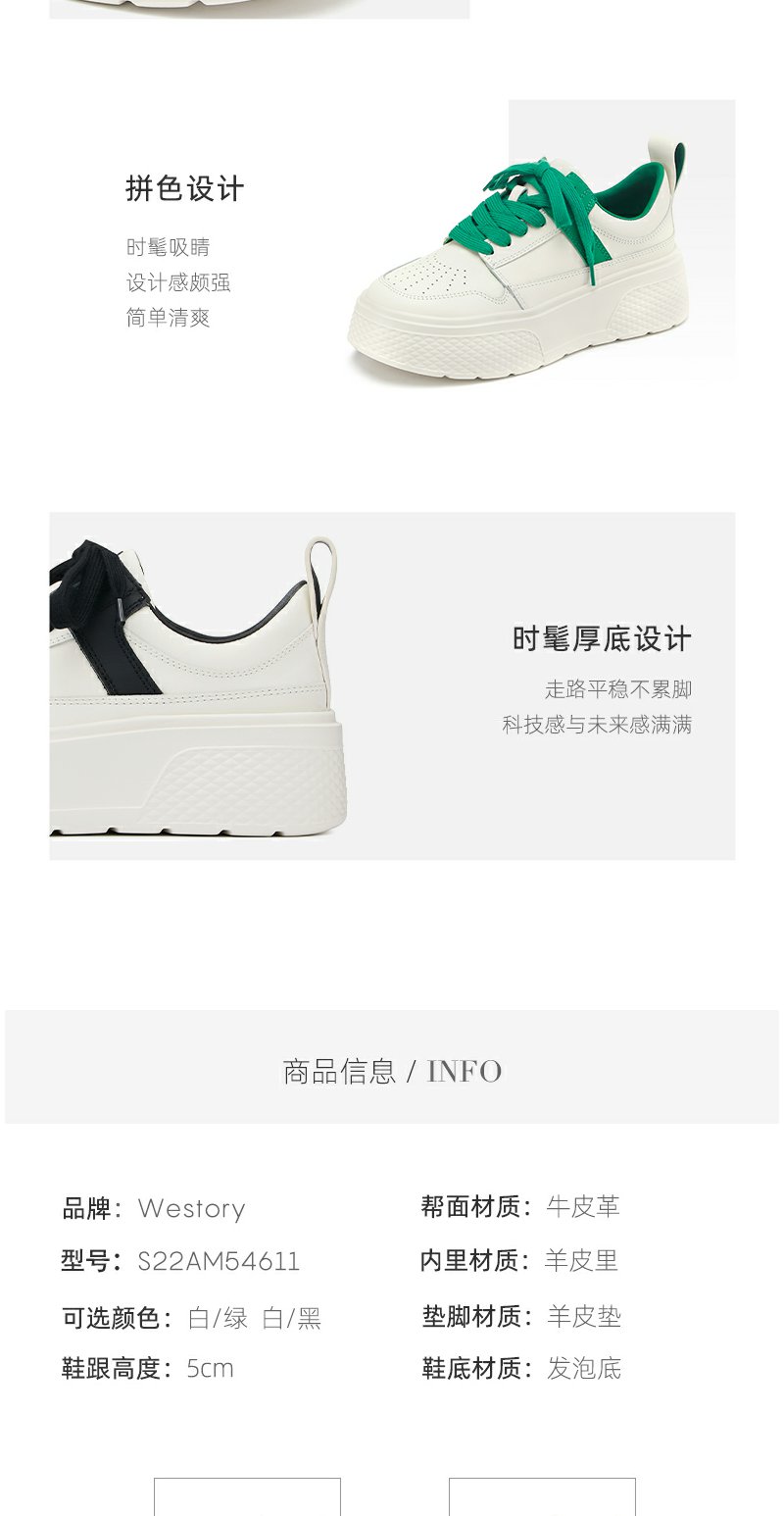 westory2022年春季新款真皮小白鞋厚底透气拼色时髦休闲鞋系带S22AM54611