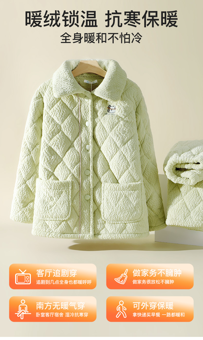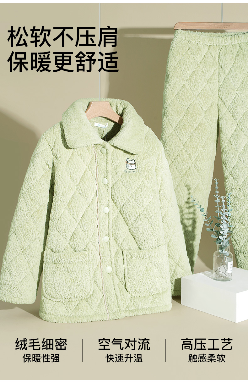 I'd爱帝女士冬款睡衣三层夹棉加厚家居服套装