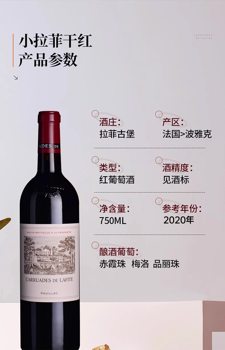 拉菲珍宝 2020年Carruades de Lafite法国一级名庄拉菲副牌酒