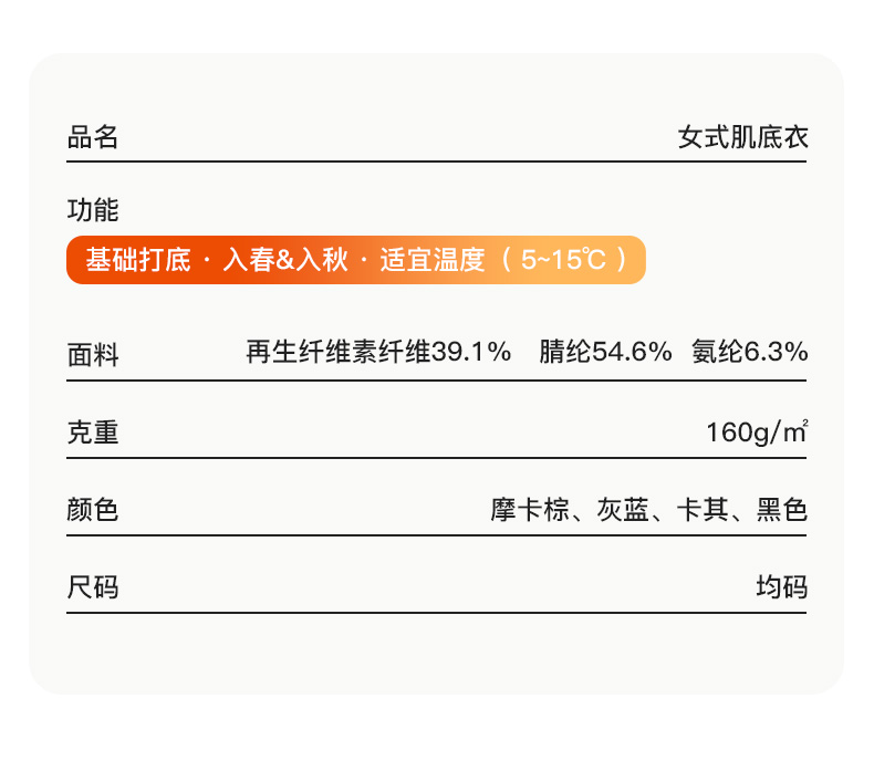 爱帝女式轻暖膨体发热绒肌底衣