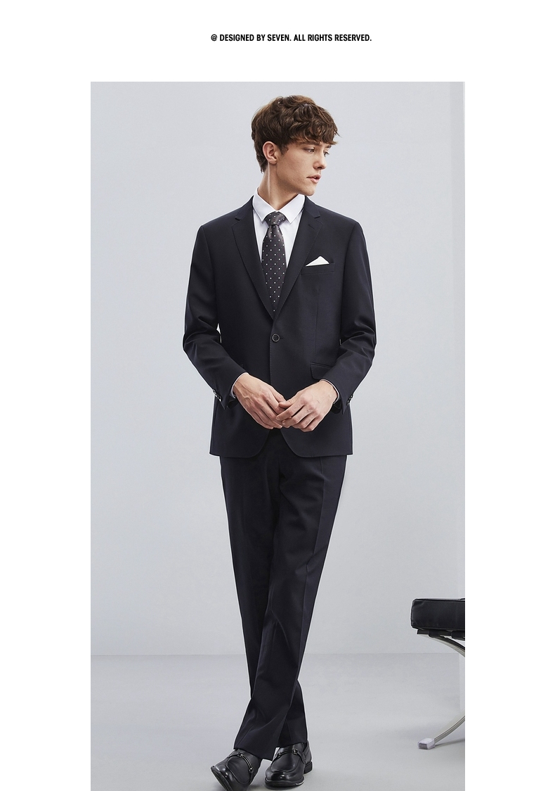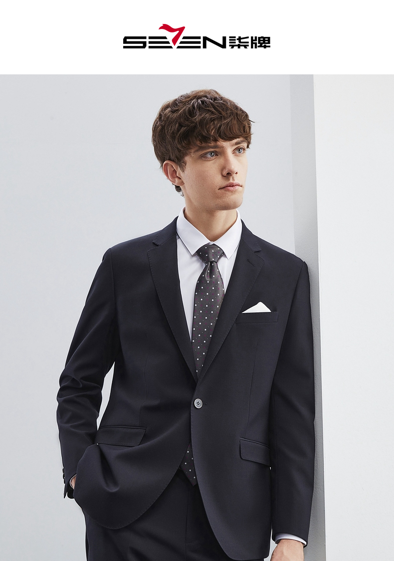 【含麻/莱赛尔】柒牌西装套装男春季新款商务正装西服两件套124C70060