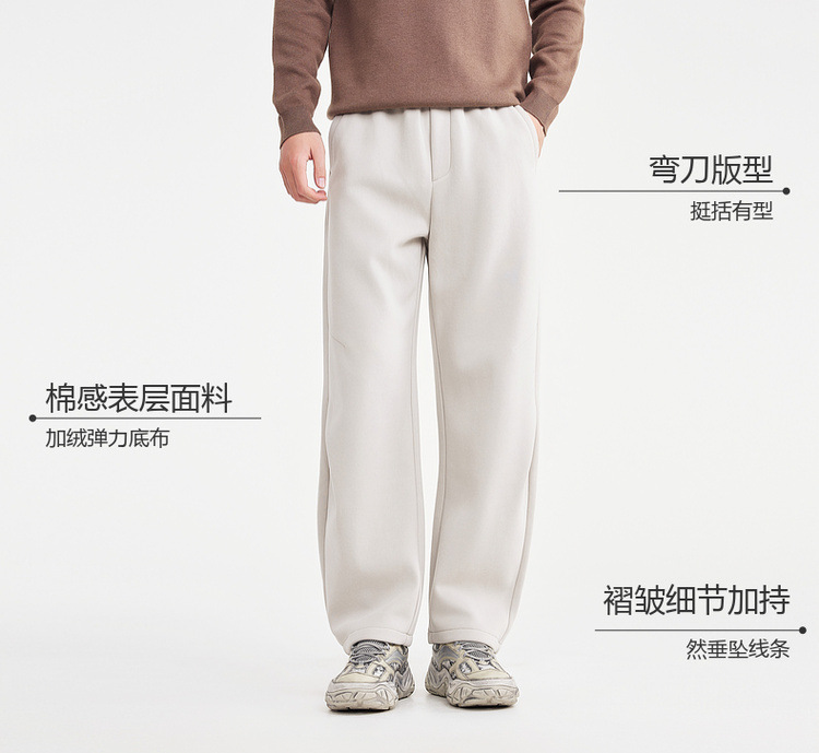 墨麦客男装松紧腰加绒休闲裤男2025冬季新款宽松男士弯刀裤91517