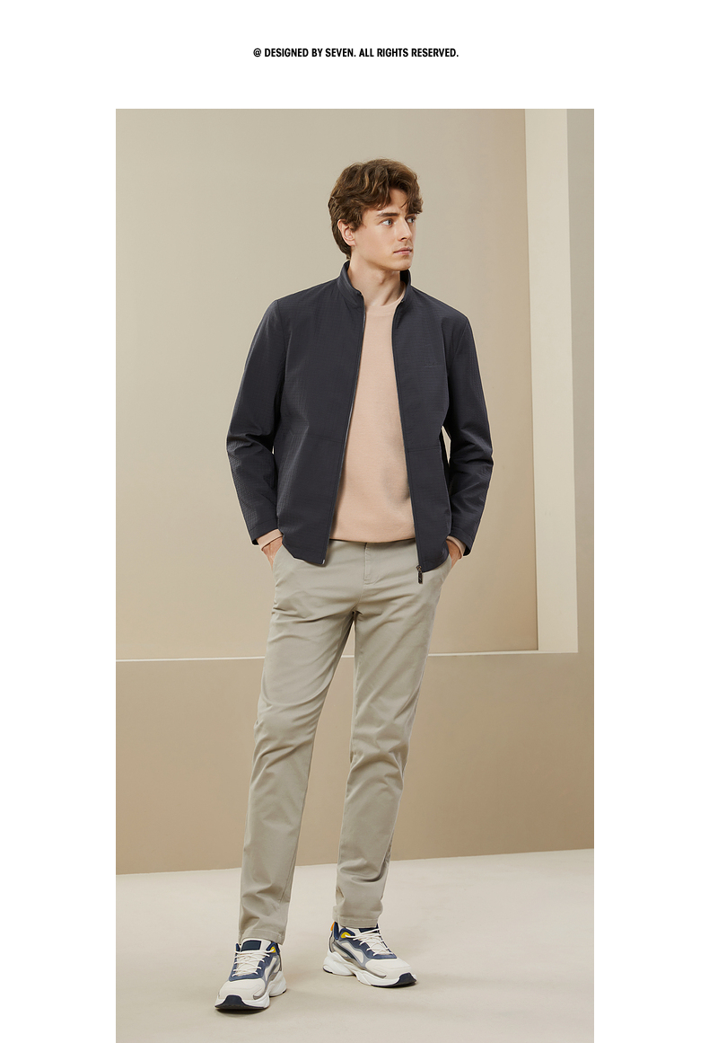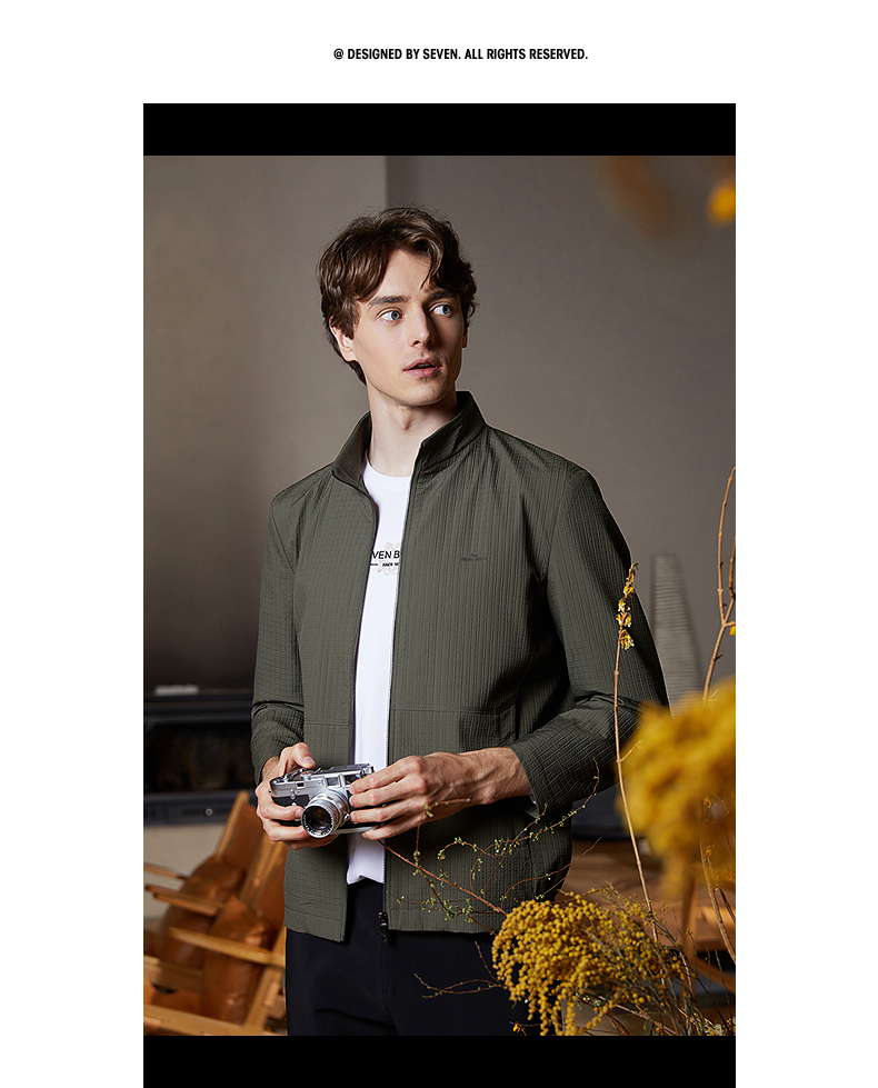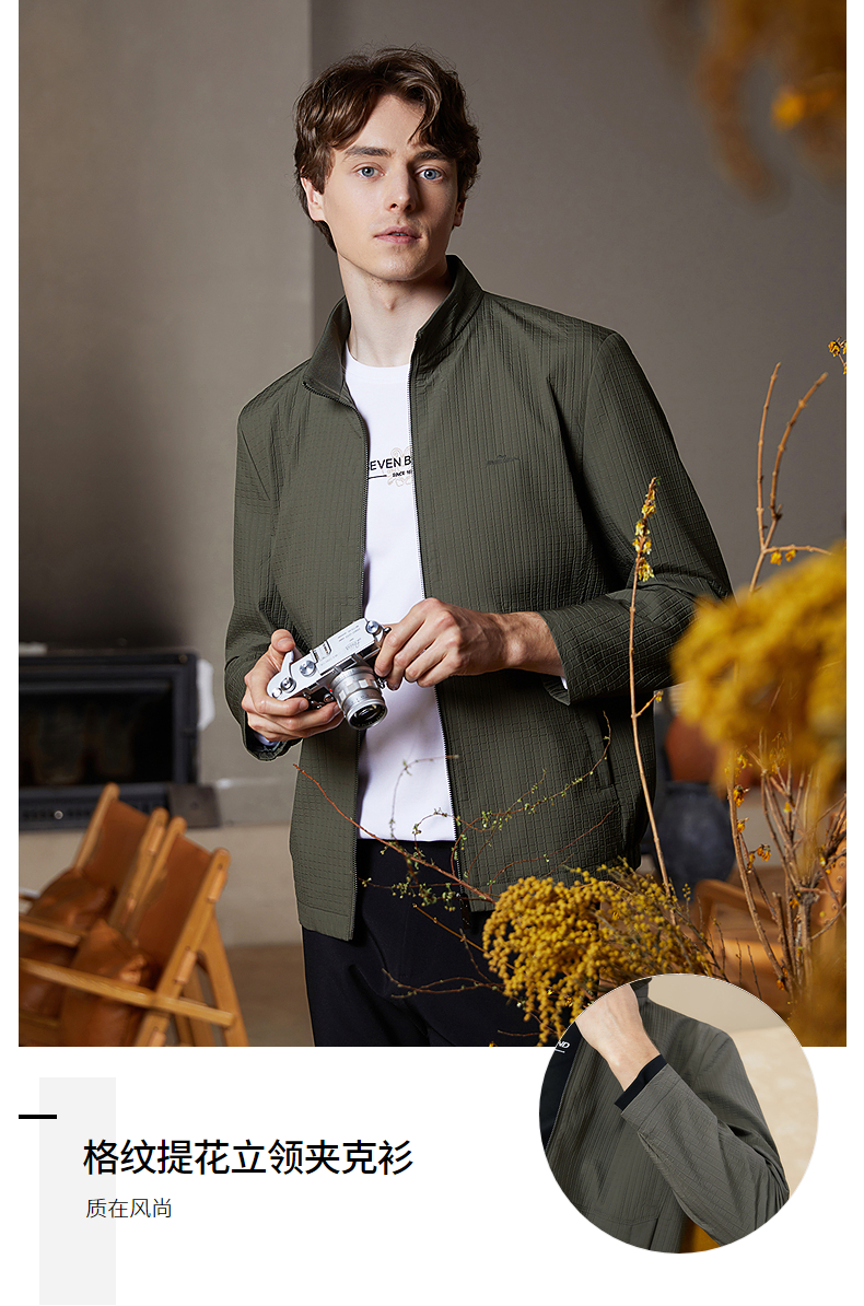 【格纹提花】柒牌立领夹克男秋季新款时尚休闲爸爸装茄克外套 125K70190