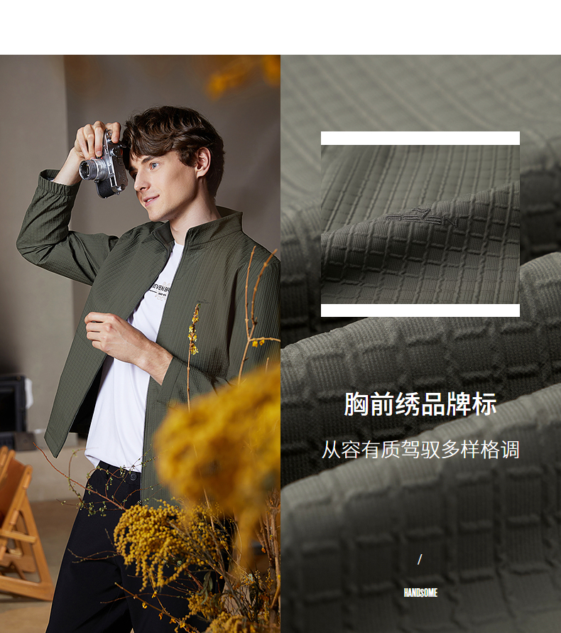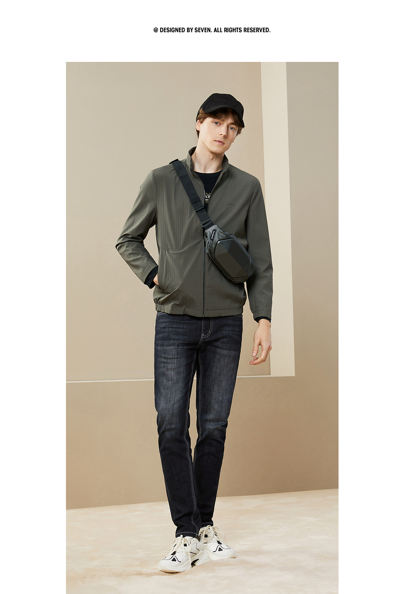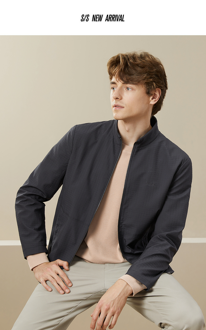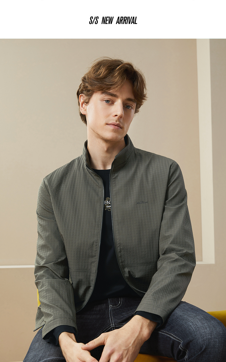 【格纹提花】柒牌立领夹克男秋季新款时尚休闲爸爸装茄克外套 125K70190