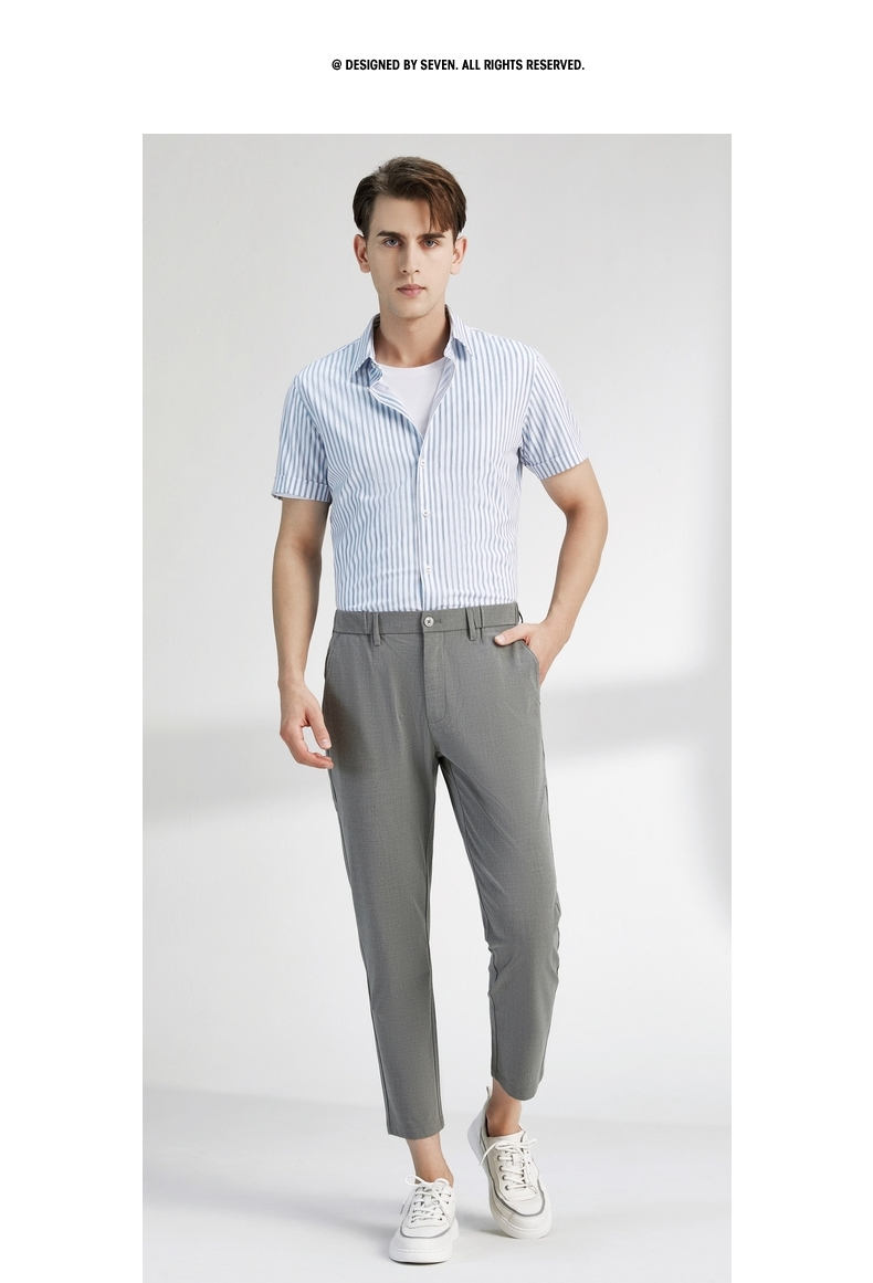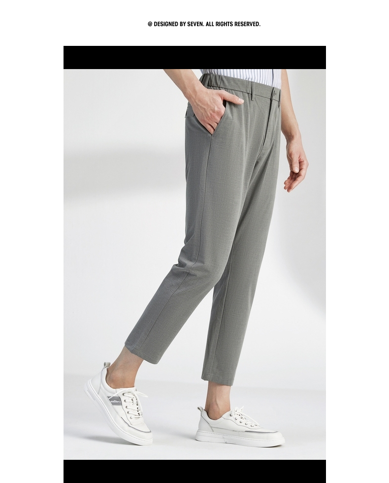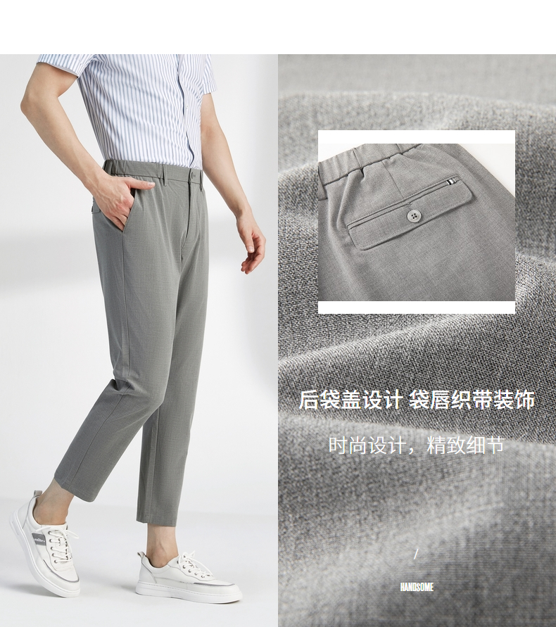 【特价】柒牌休闲长裤男商务通勤便装男裤春夏款松紧腰青年直筒九分裤 122H71680