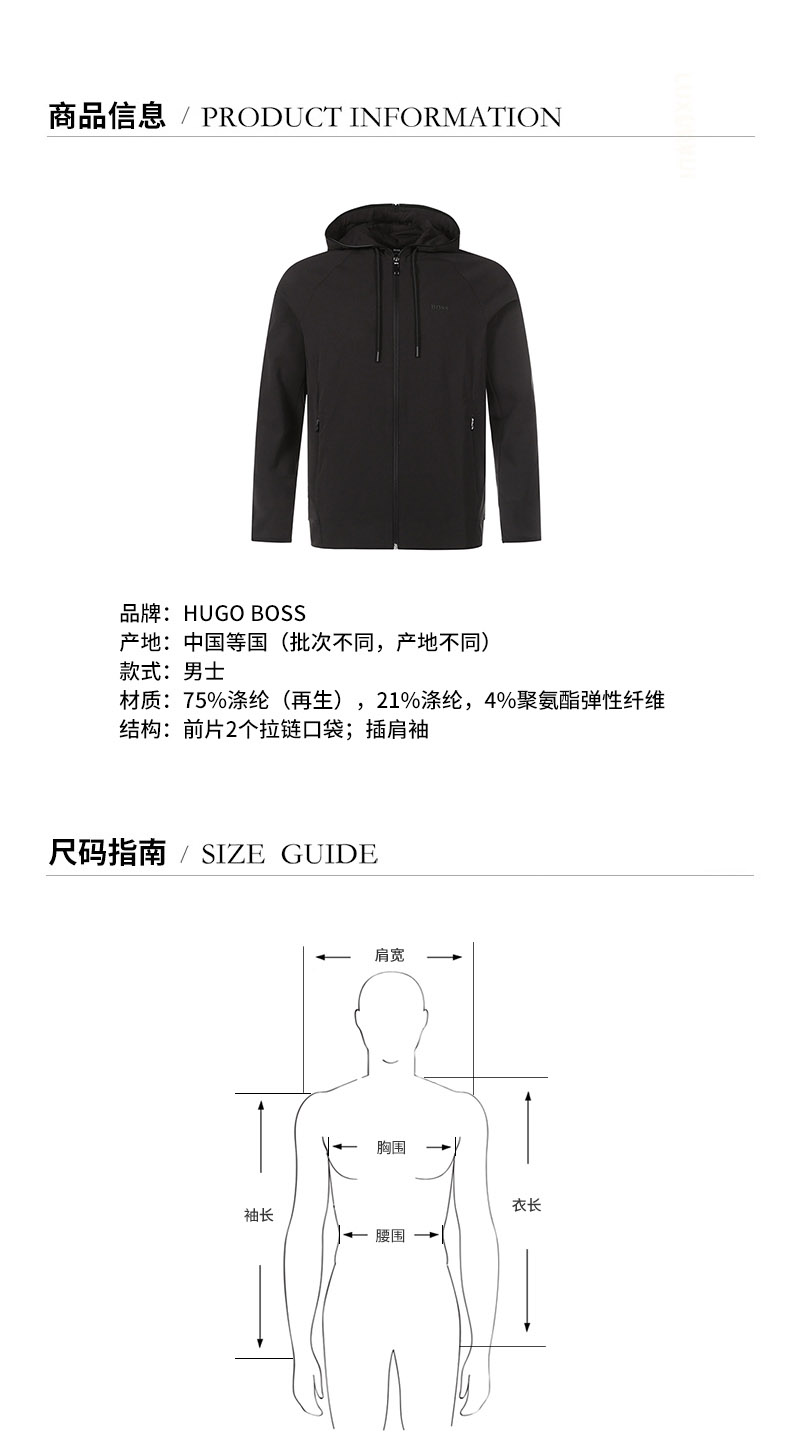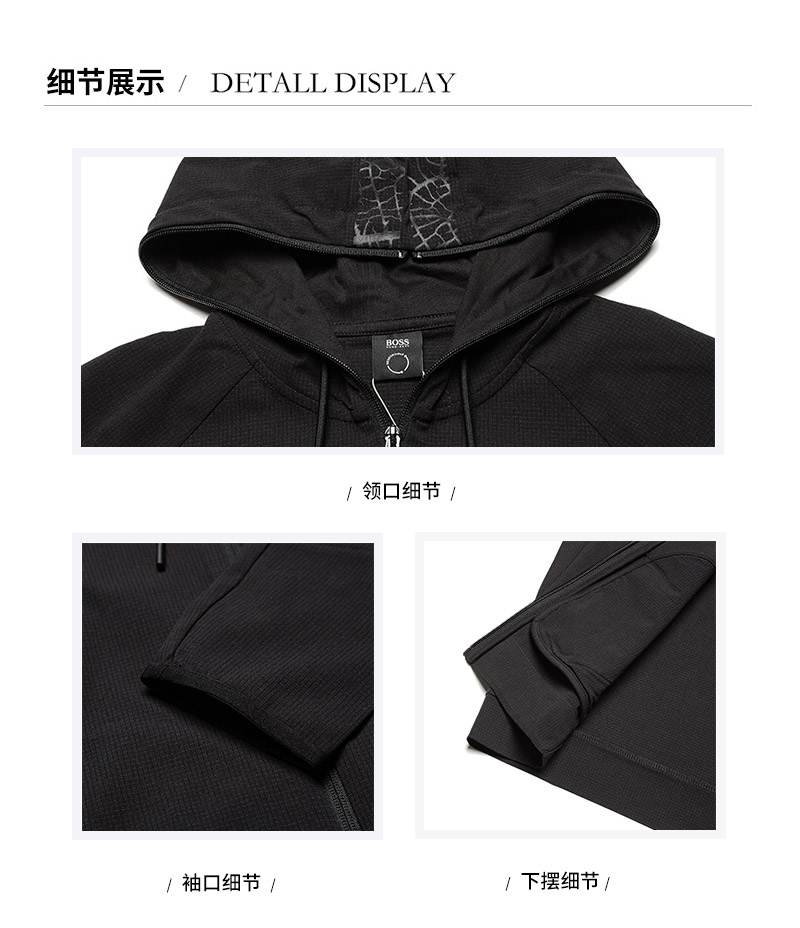 HUGO BOSS/雨果博斯【21秋冬新款】男士涤纶(再生)连帽运动衫上衣外套 50447863
