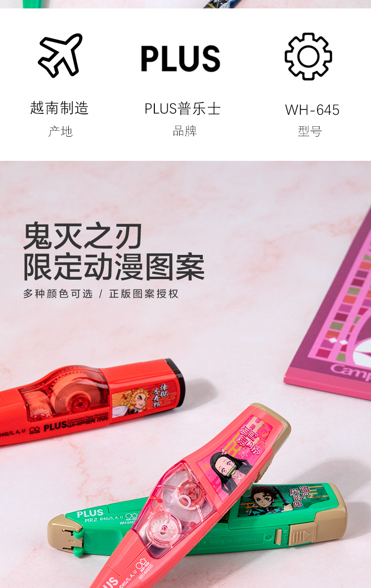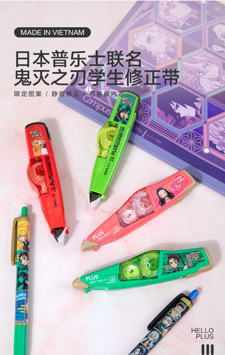 日本PLUS普乐士鬼灭之刃联名款限定修正带学生涂改带炭治郎祢豆子杏寿郎限定大容量修正带