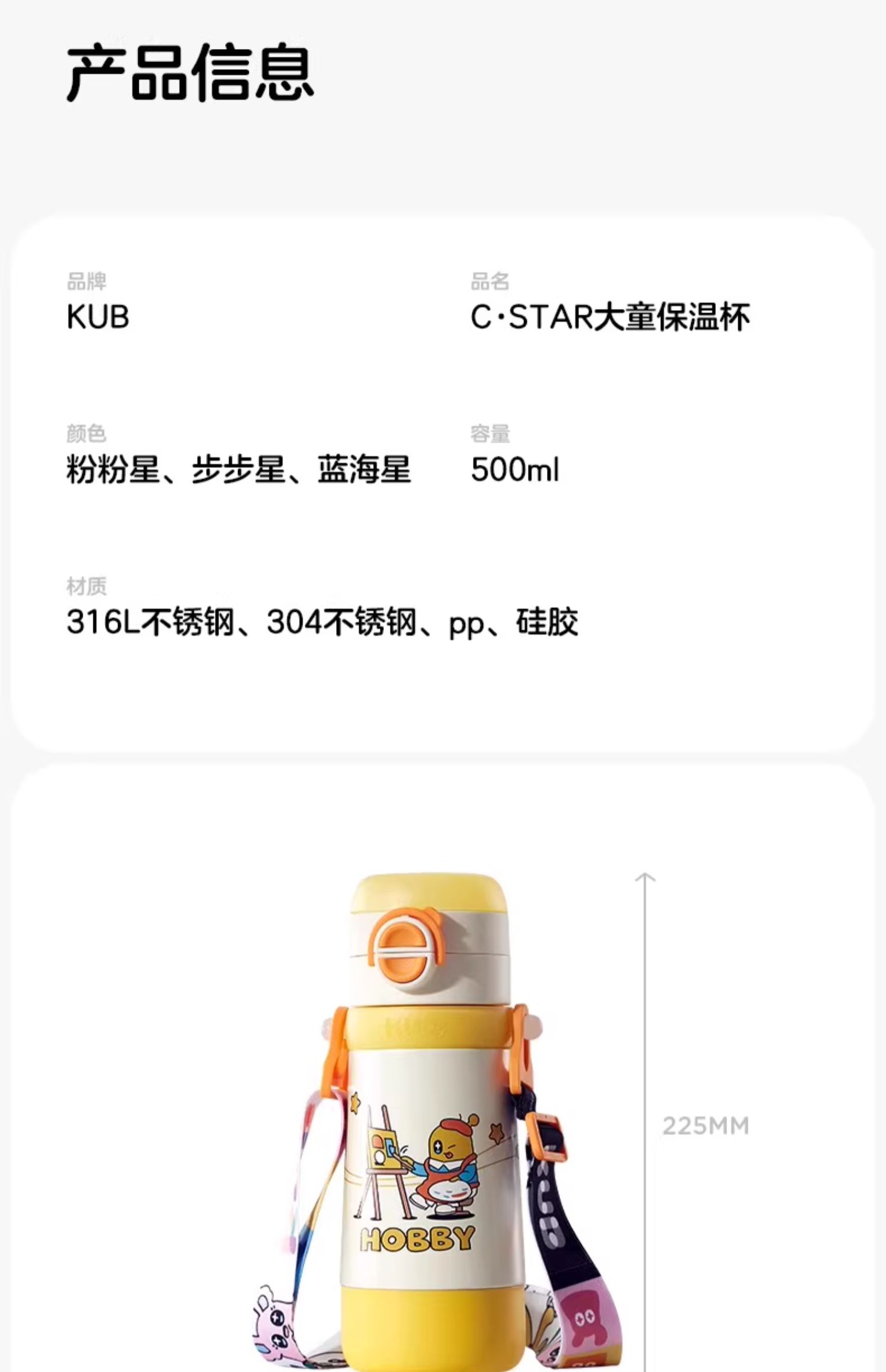 KUB可优比-Cstar大童保温杯(双盖)500ml