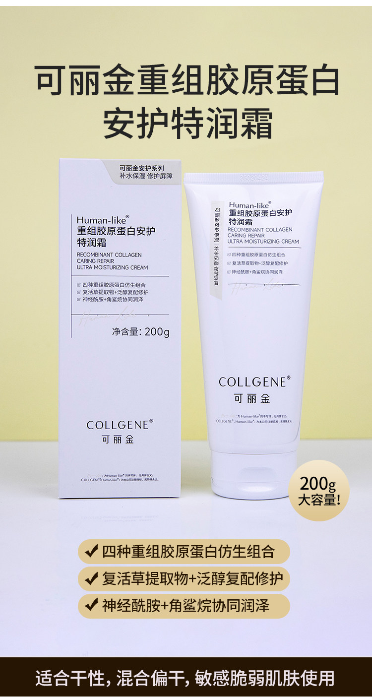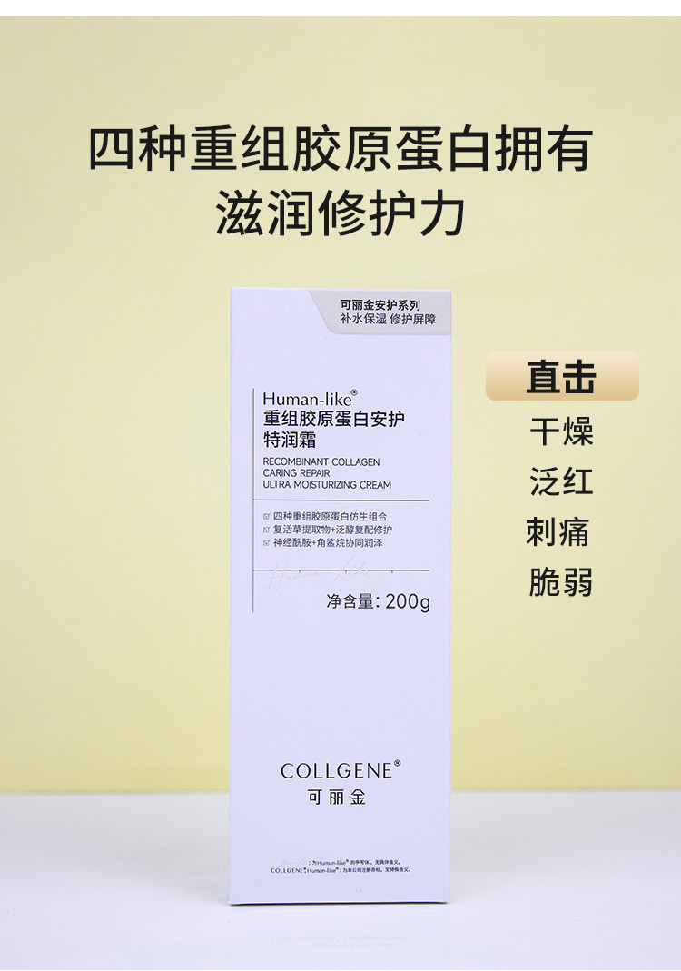 可丽金重组胶原蛋白安护特润霜200g类人胶原蛋白滋润保湿修护面霜
