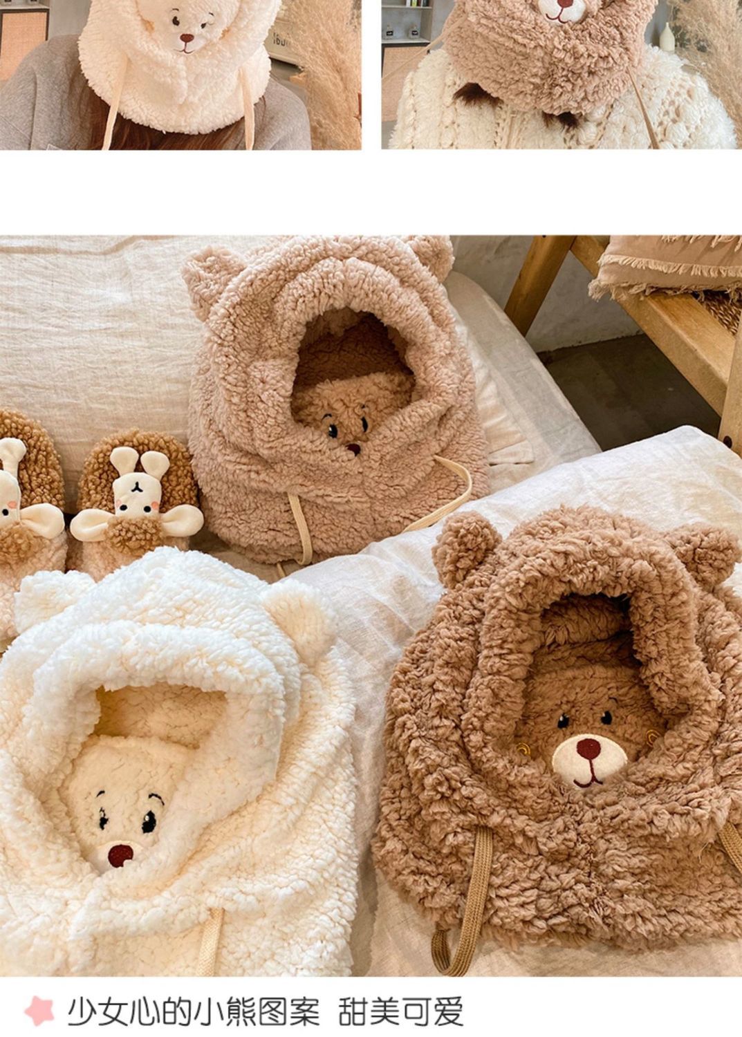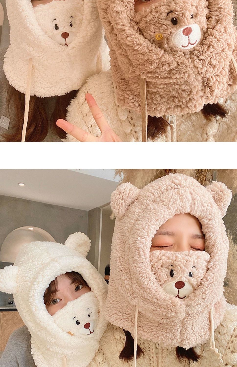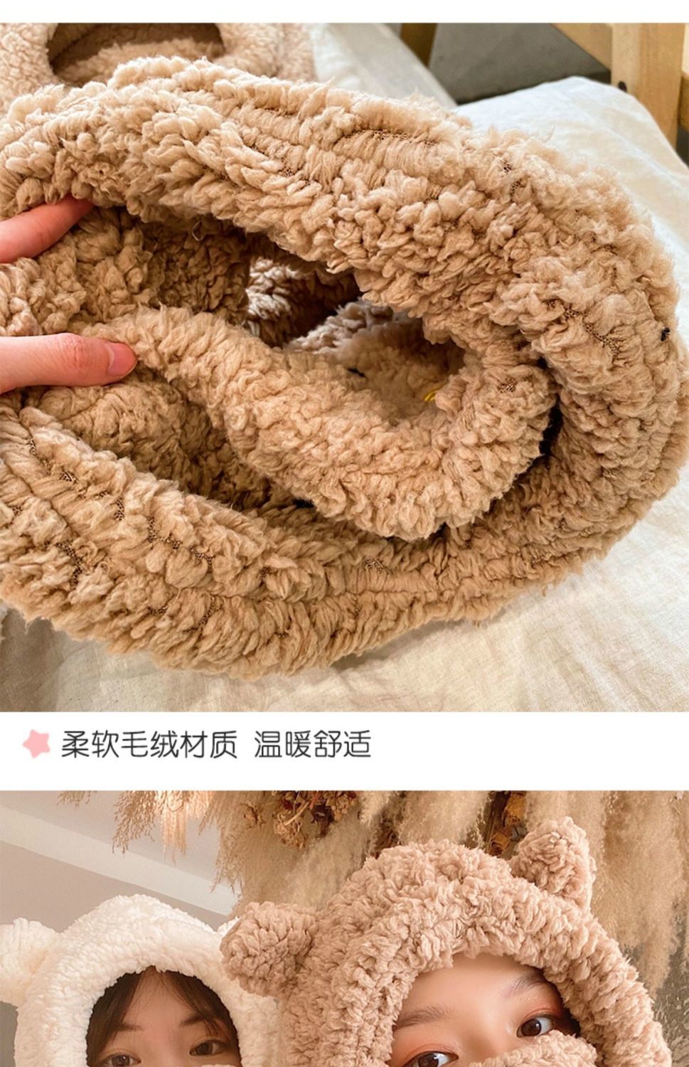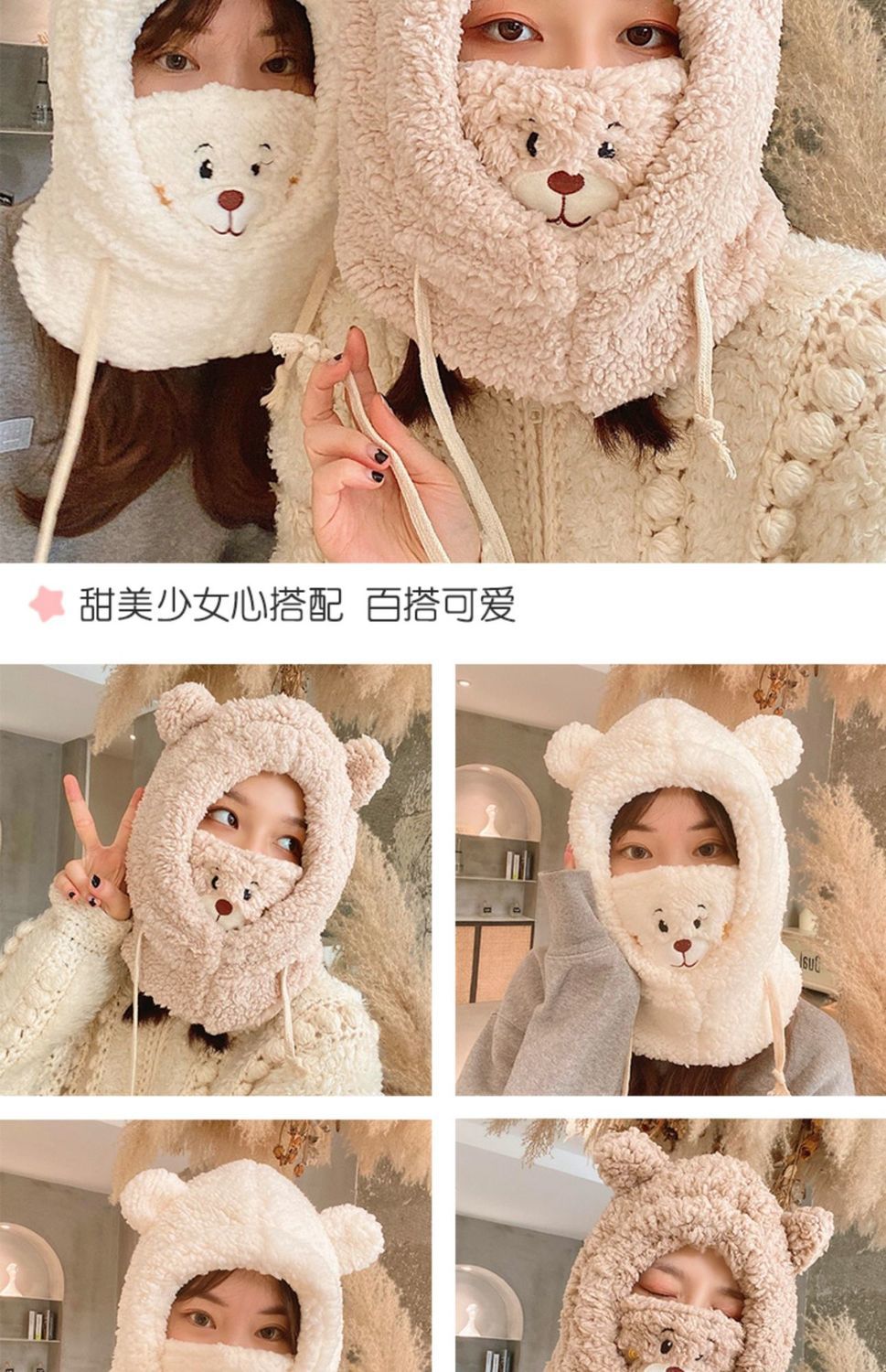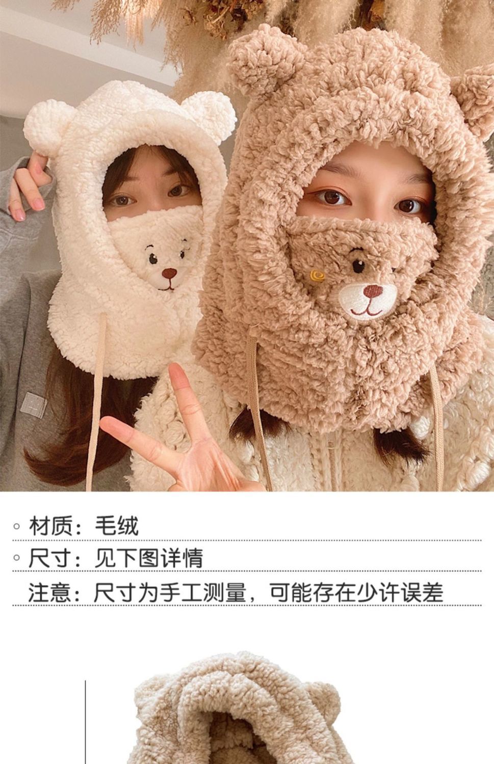 可爱小熊帽子女秋冬韩版保暖骑车防风护耳口罩围脖一体毛绒雷锋帽