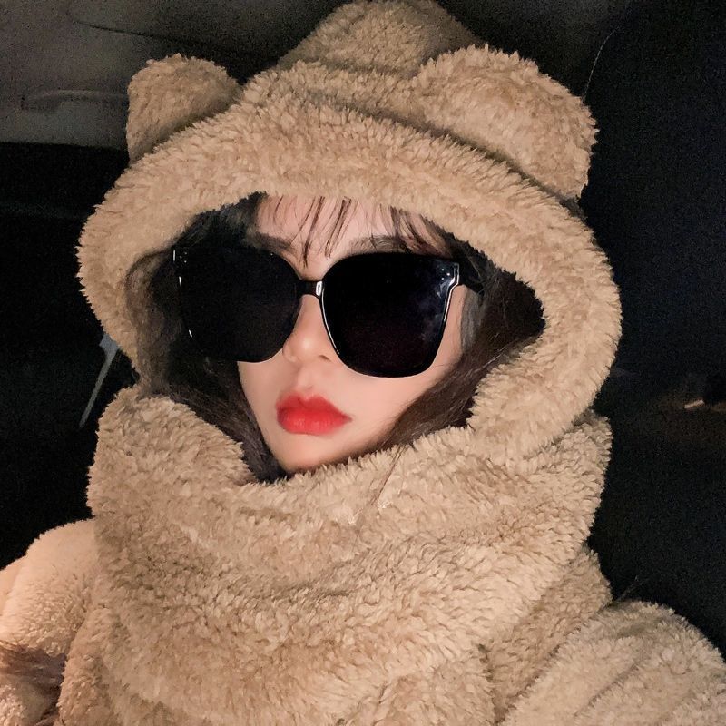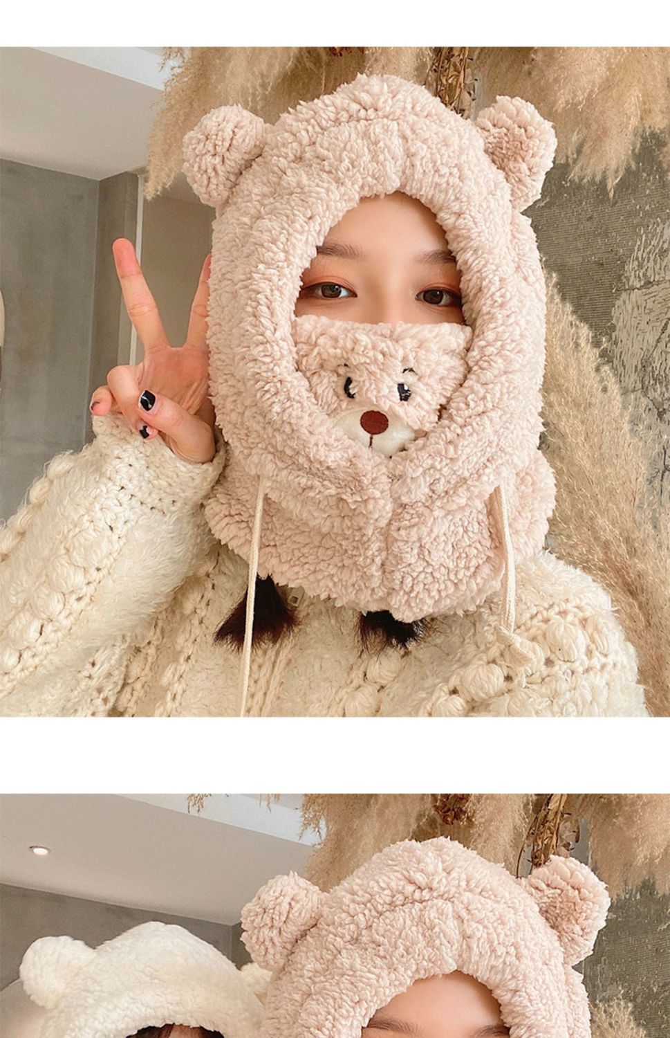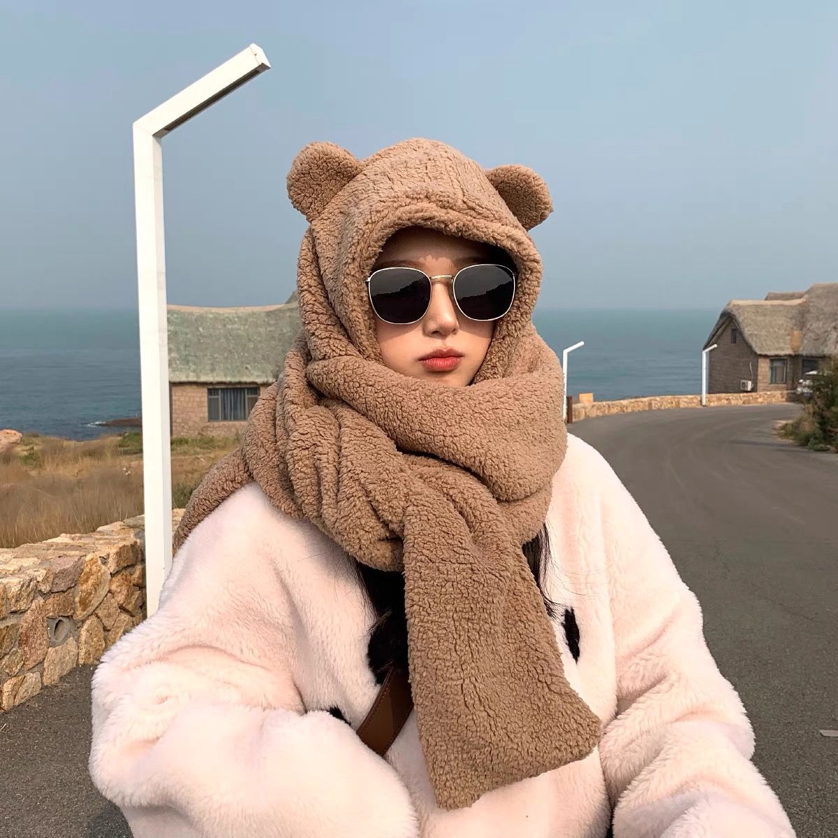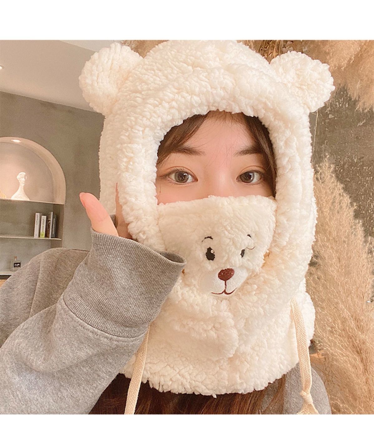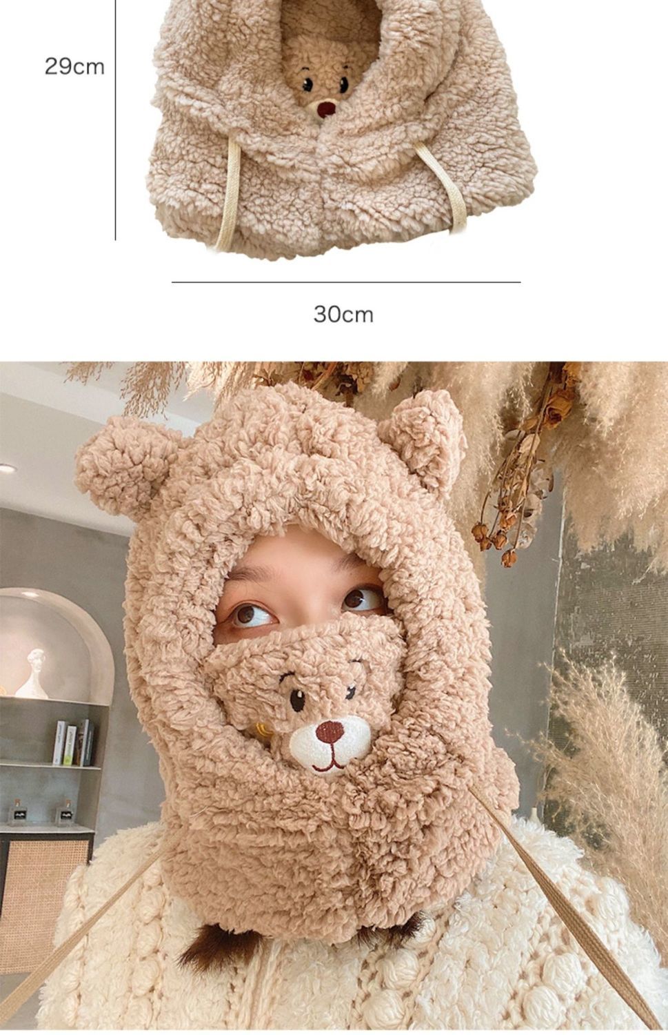 可爱小熊帽子女秋冬韩版保暖骑车防风护耳口罩围脖一体毛绒雷锋帽