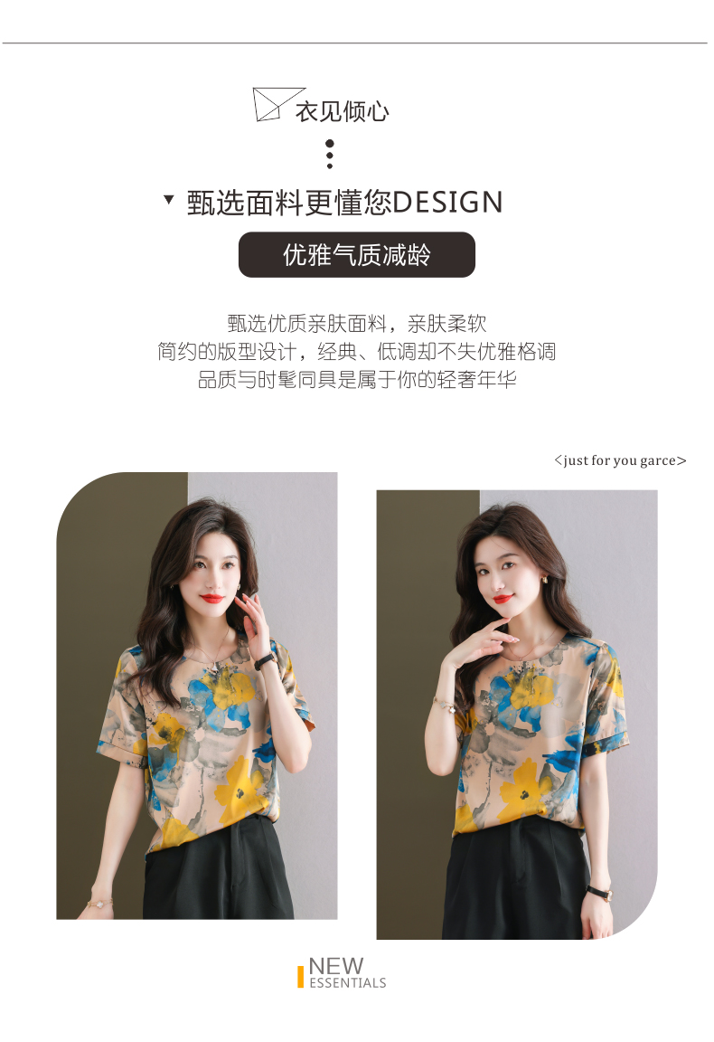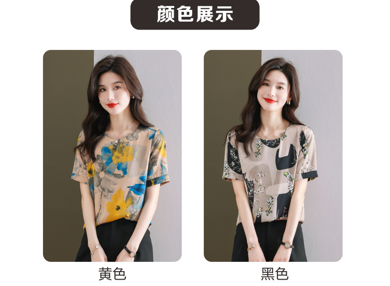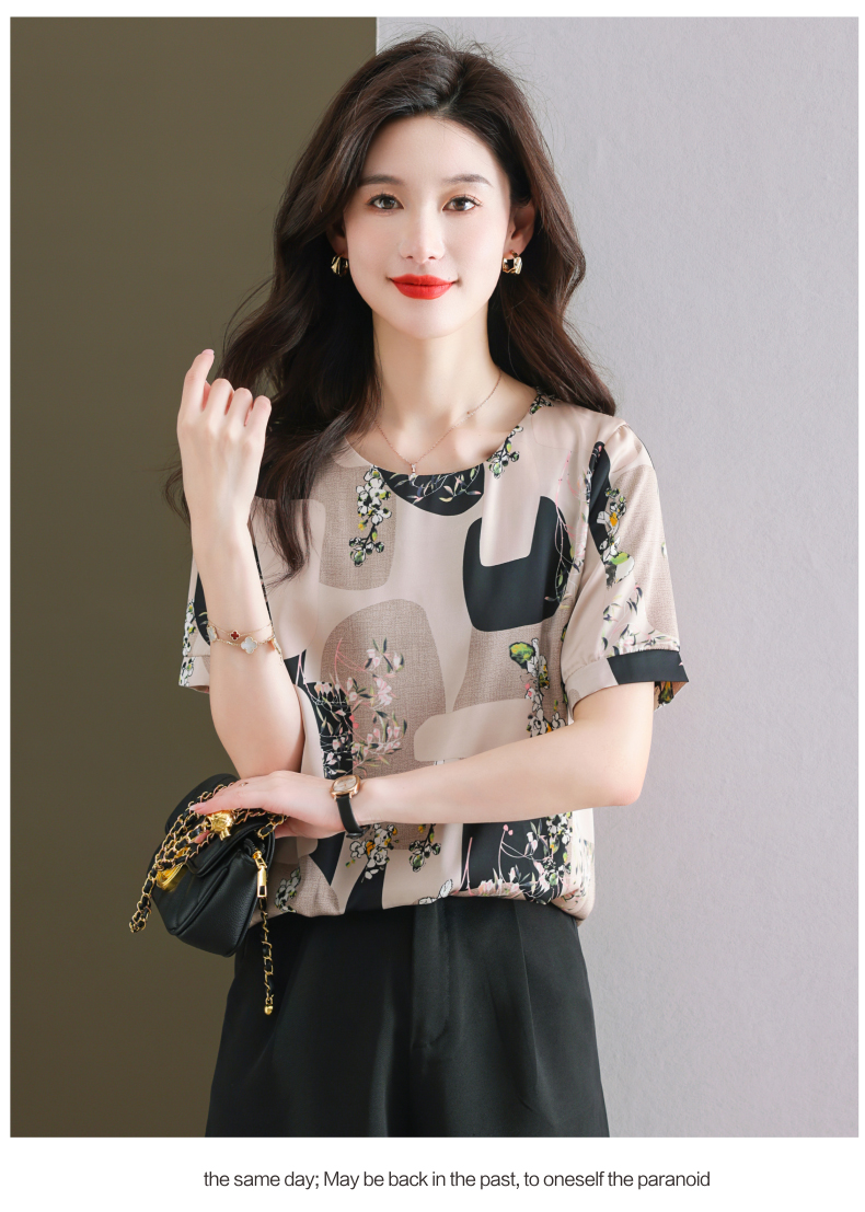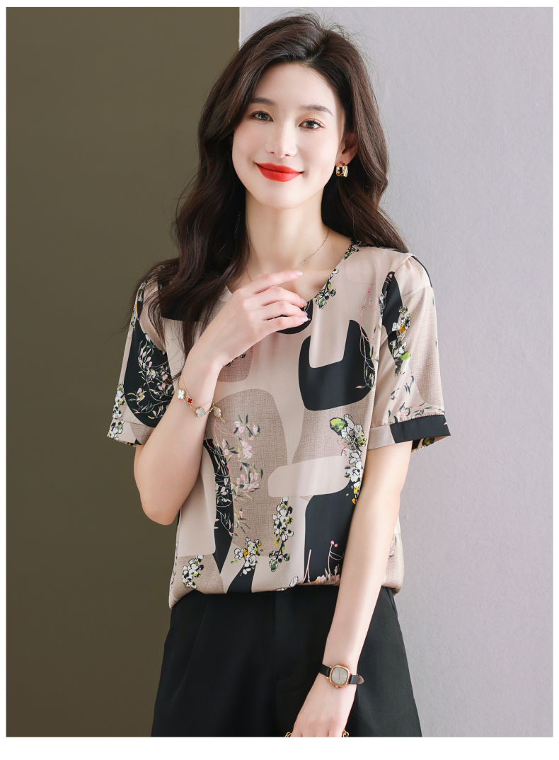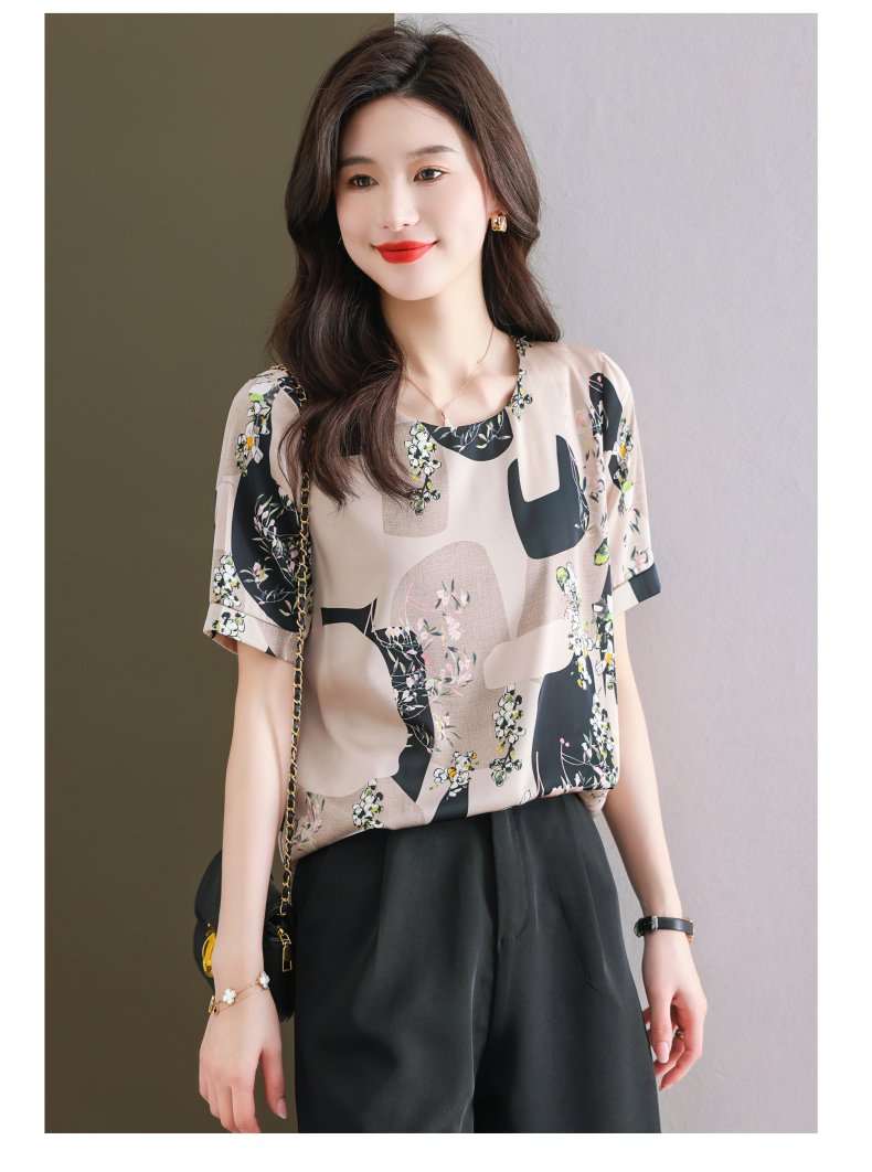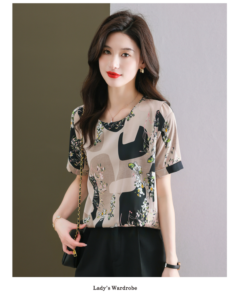 夏季新款,印花雪纺t恤女短袖休闲雪纺衬衣设计感小众女士上衣CC-38-615