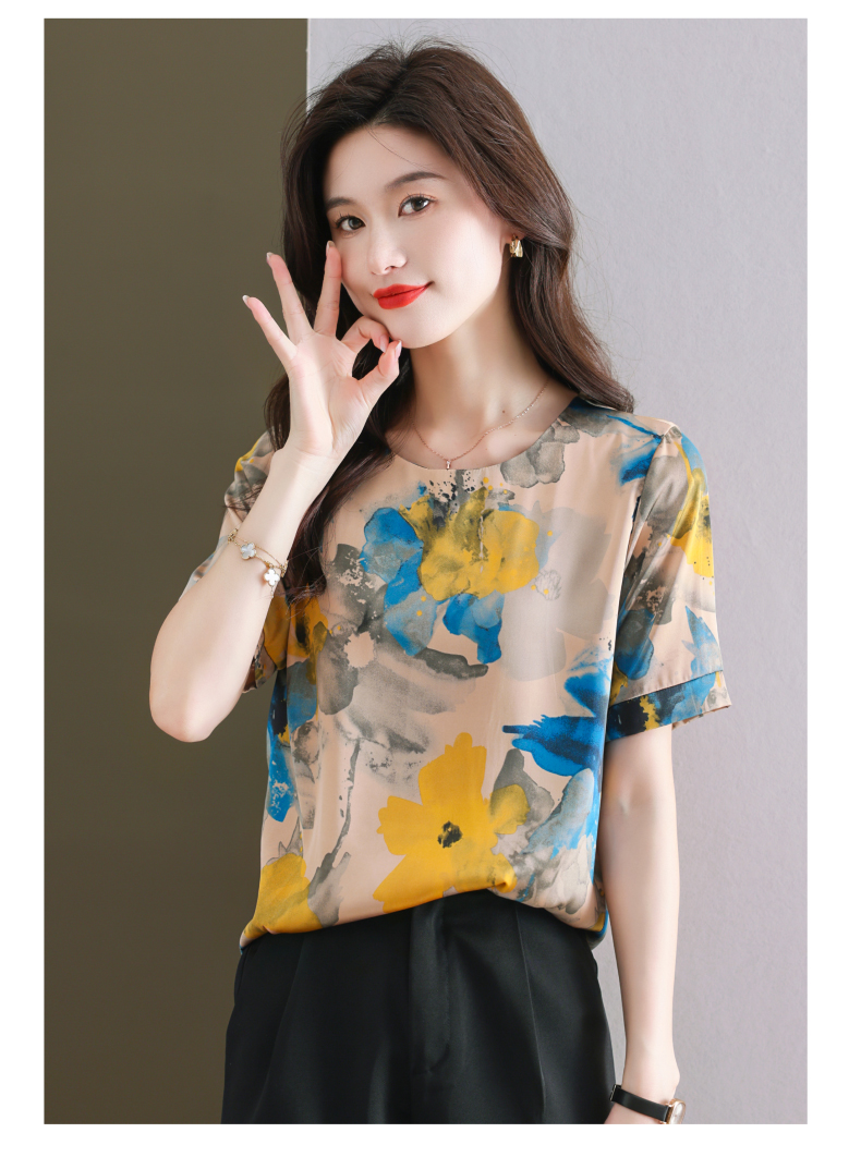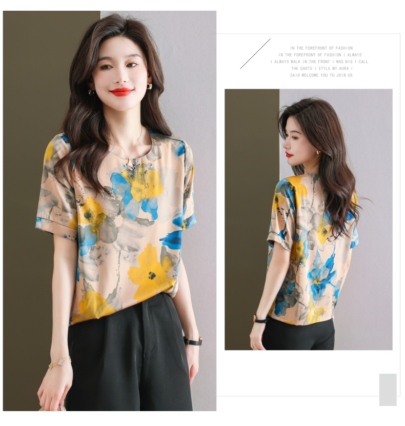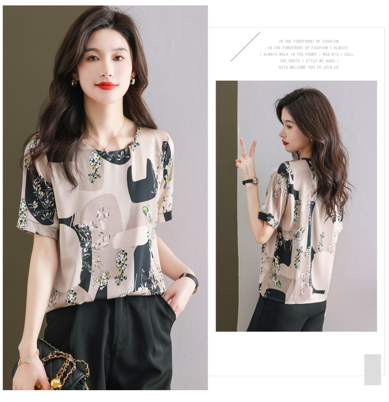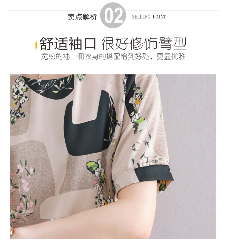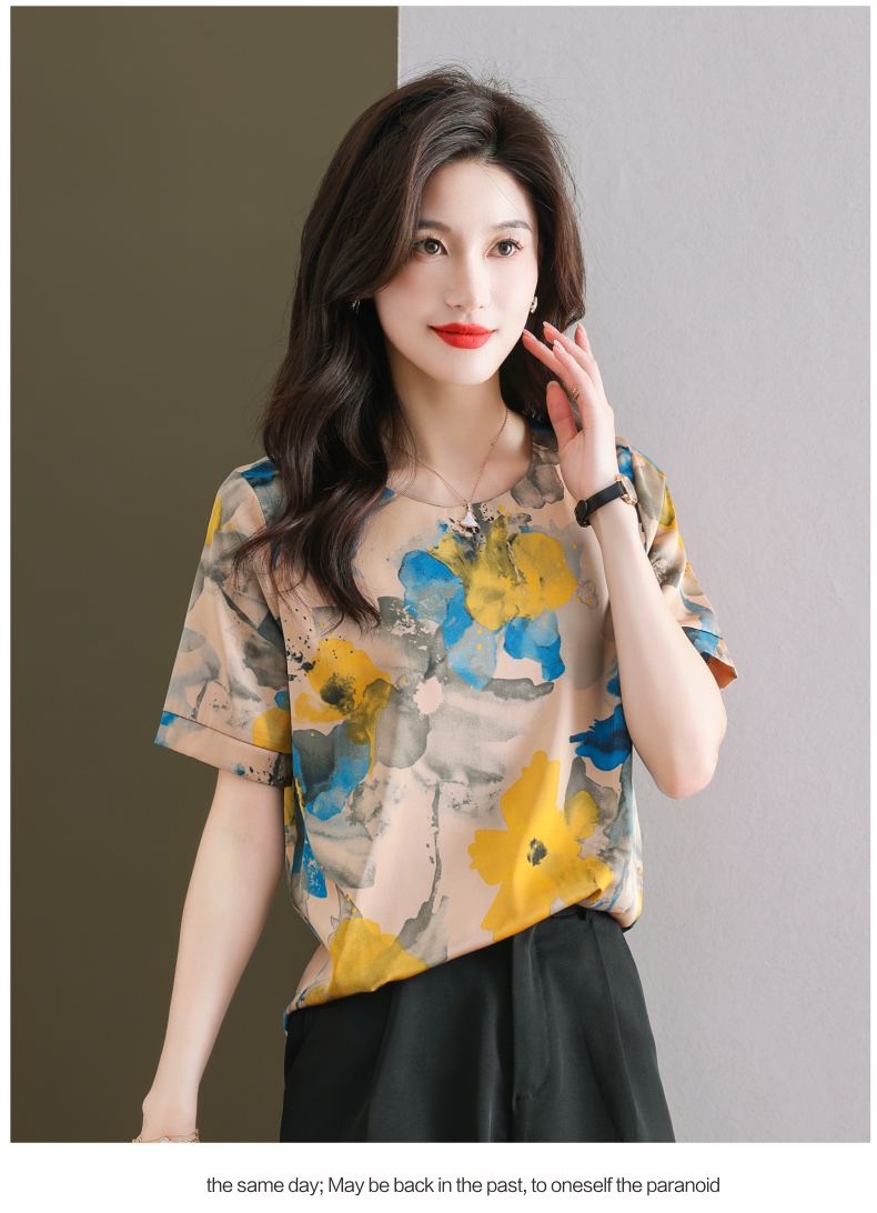 夏季新款,印花雪纺t恤女短袖休闲雪纺衬衣设计感小众女士上衣CC-38-615