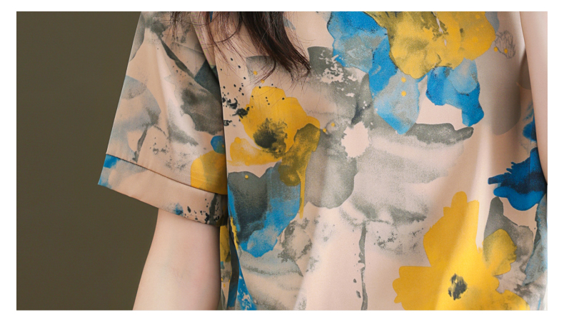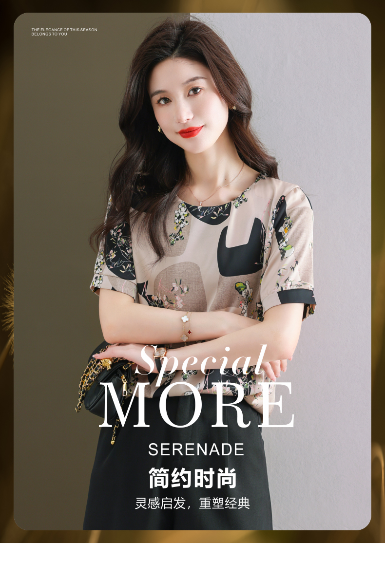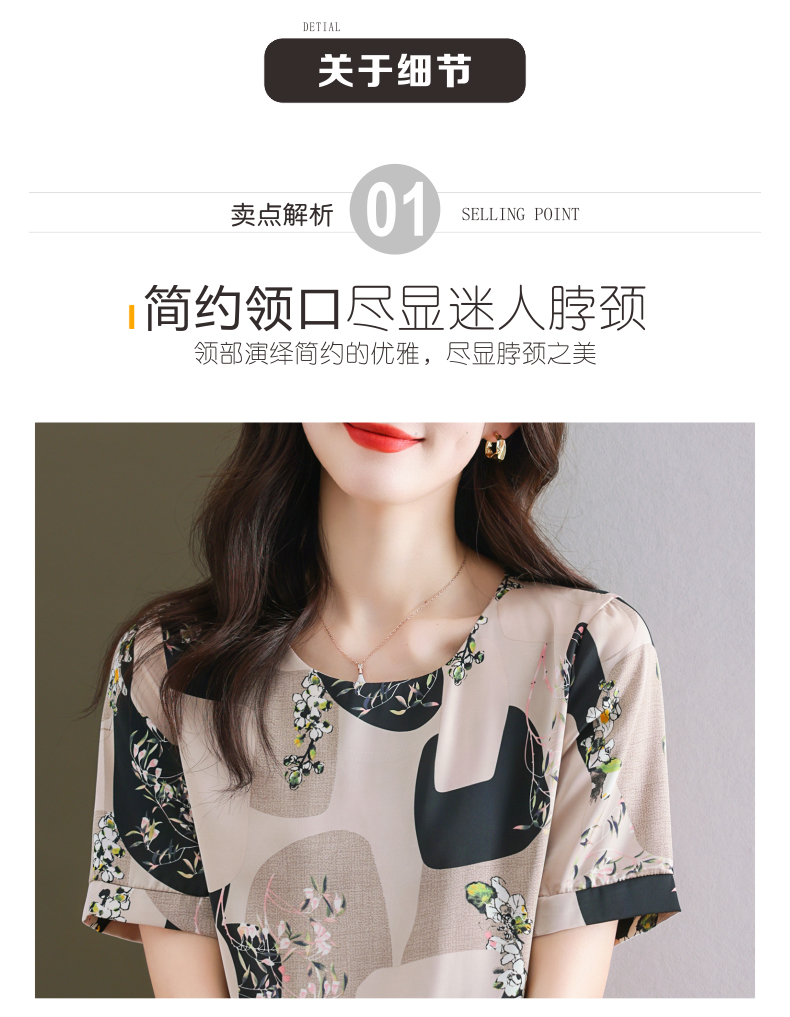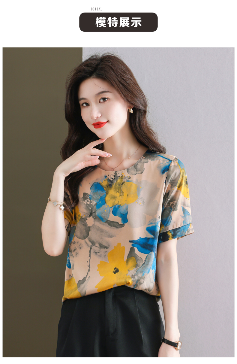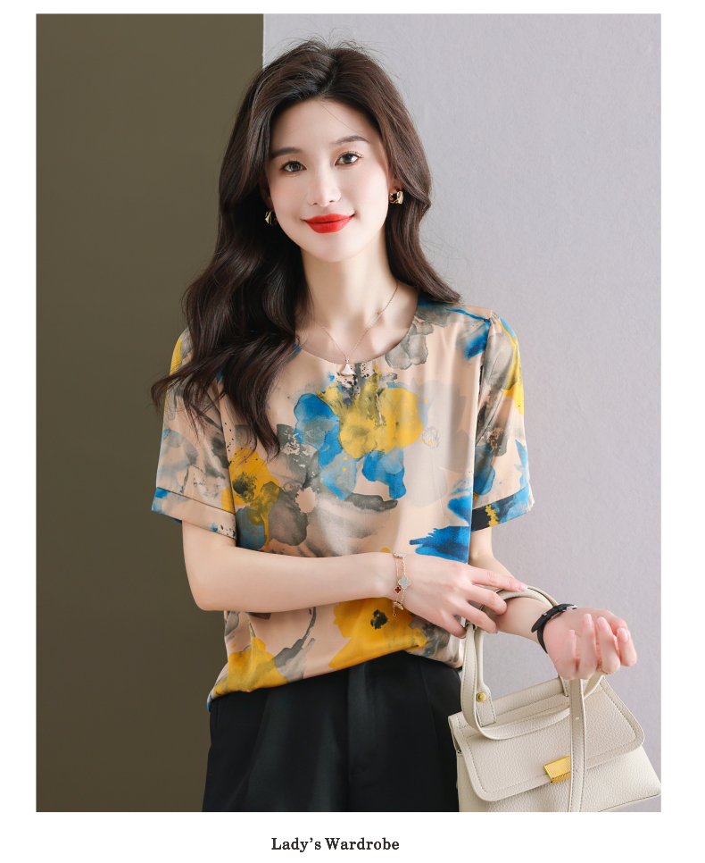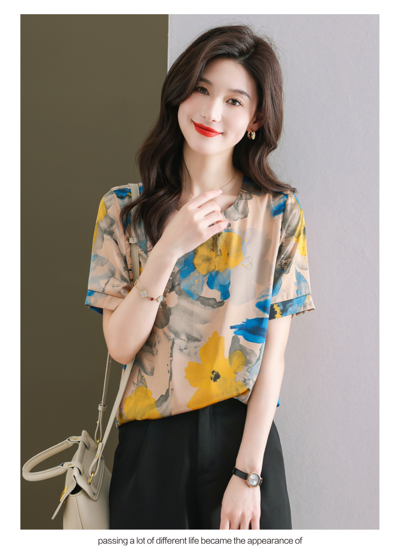 夏季新款,印花雪纺t恤女短袖休闲雪纺衬衣设计感小众女士上衣CC-38-615