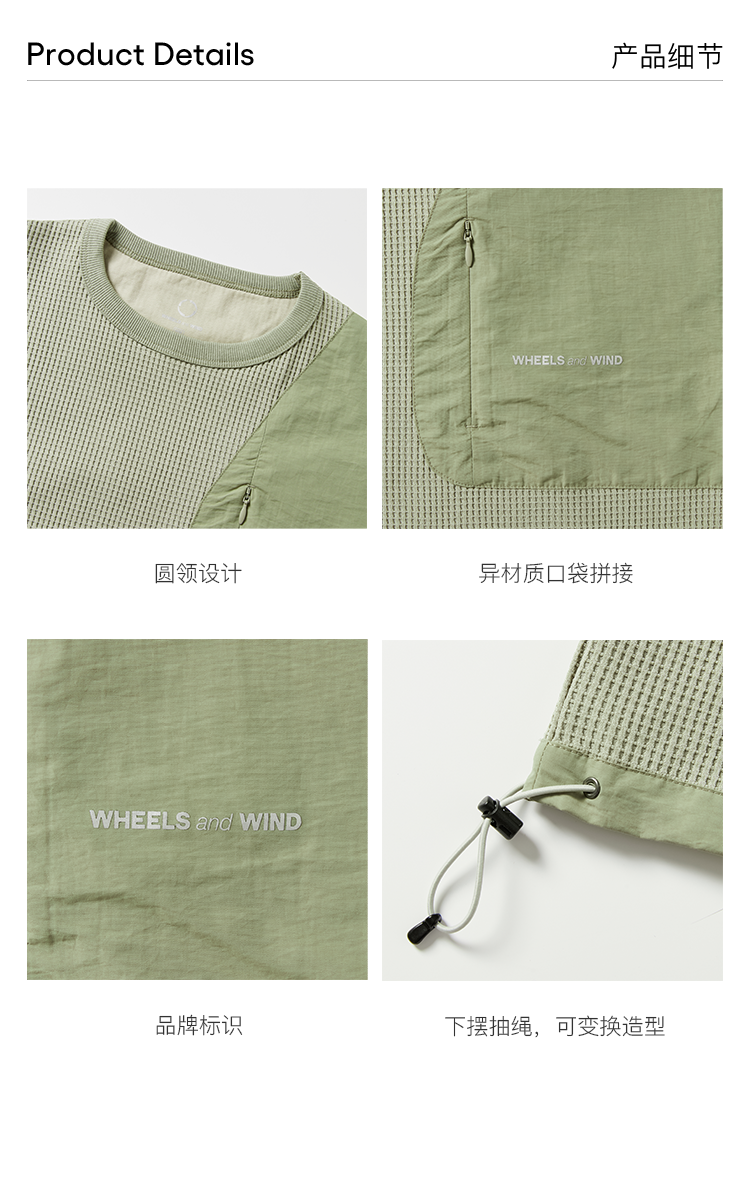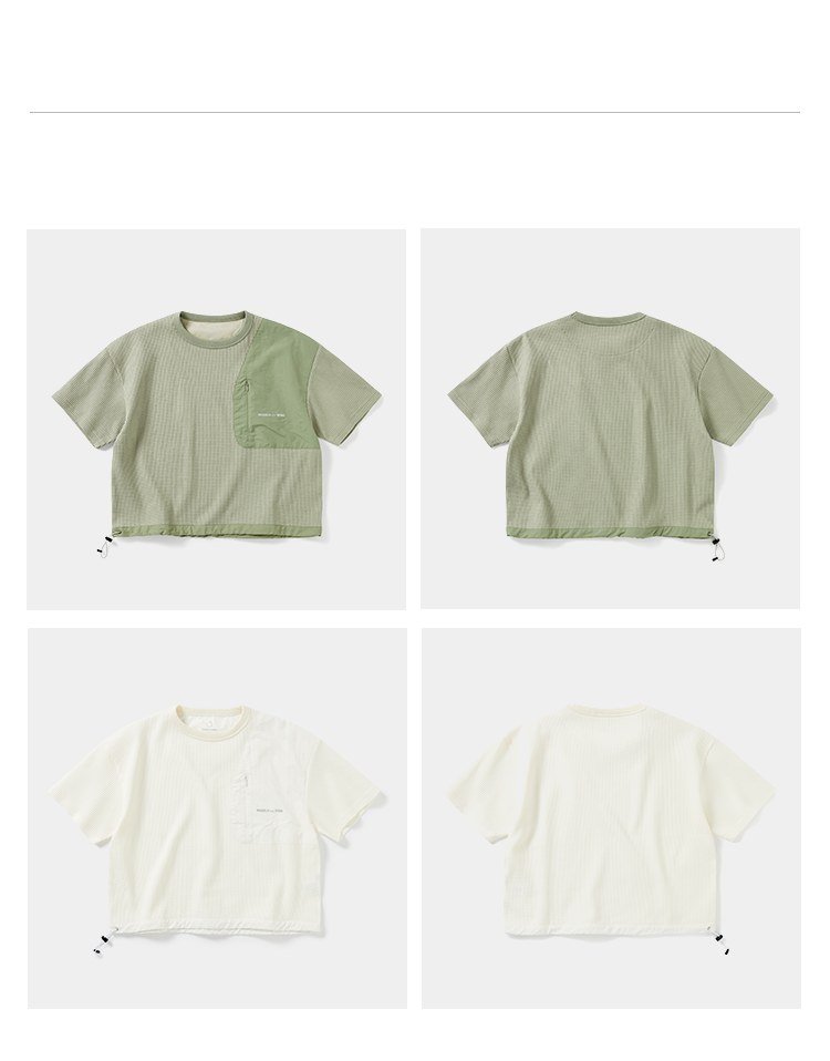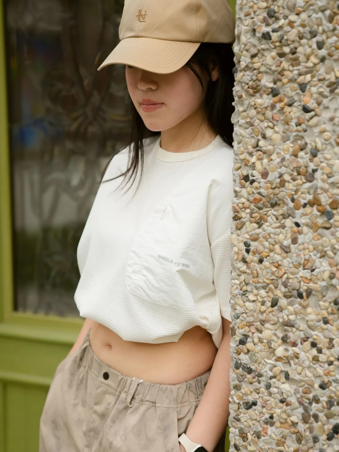 WHEELS and WIND 女式SOLOTEX华夫格短款宽松机能性圆领短袖T恤