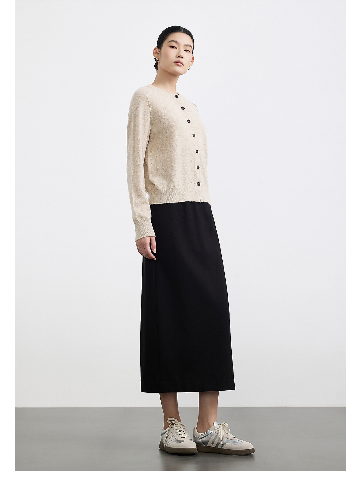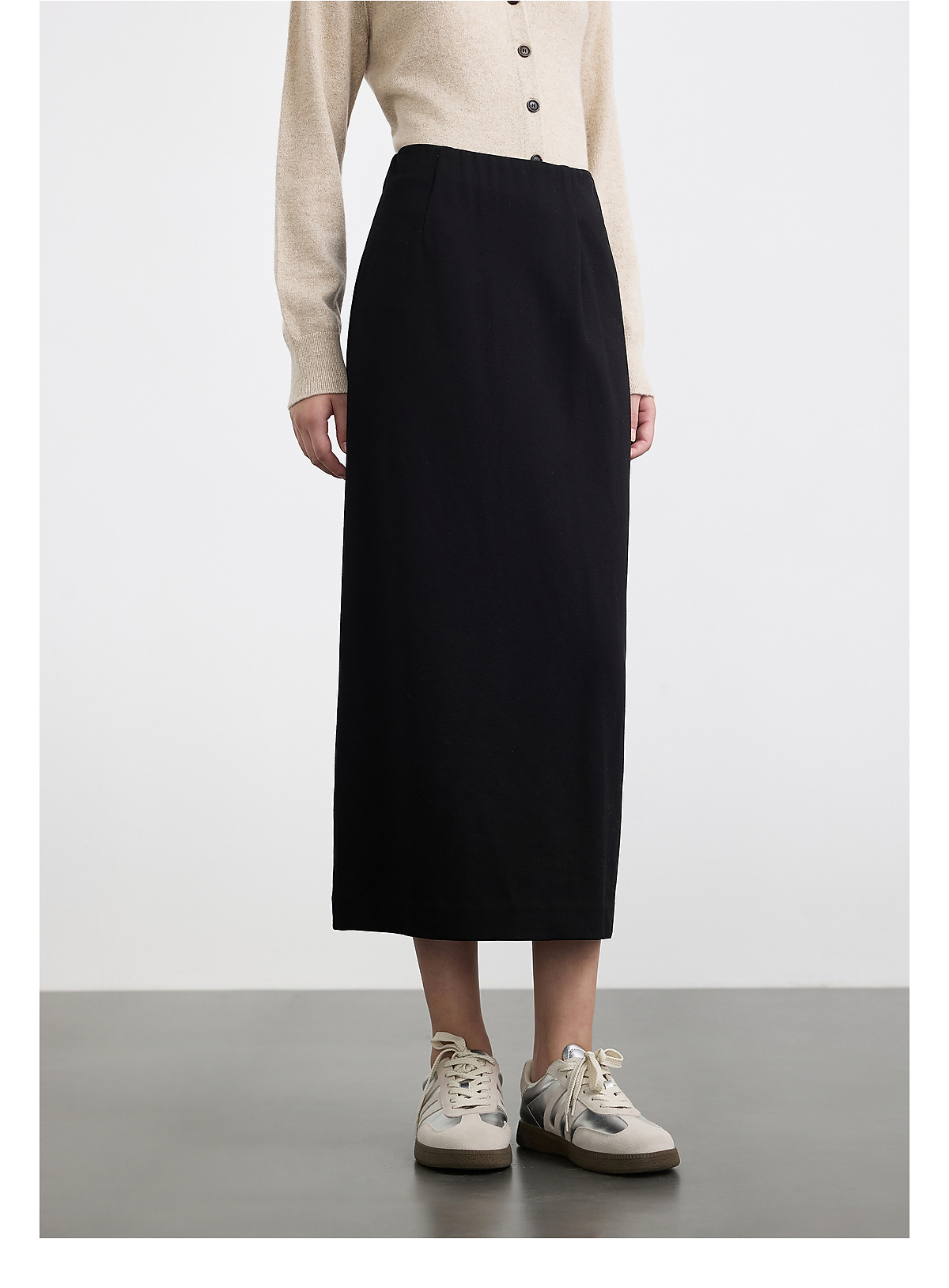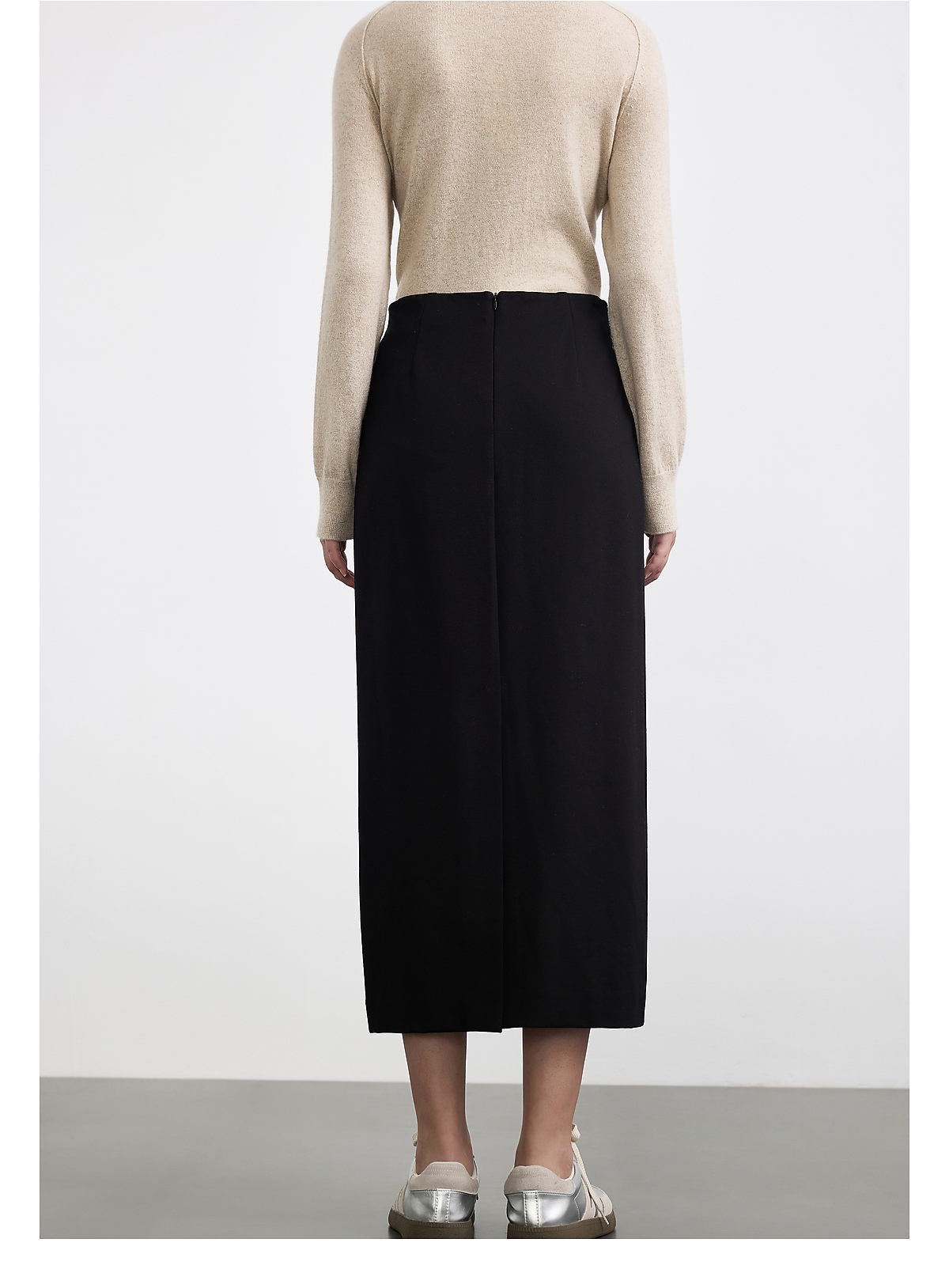 商场同款PURE TOUCH女装25秋冬新款高腰直筒半裙H型黑色过膝长裙