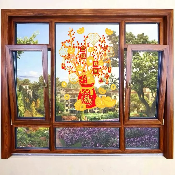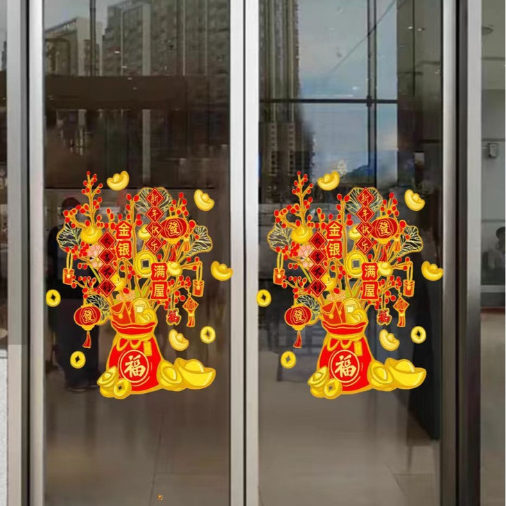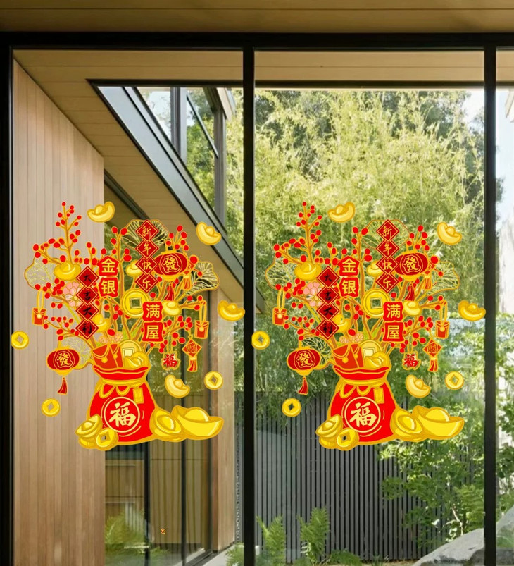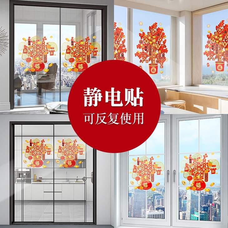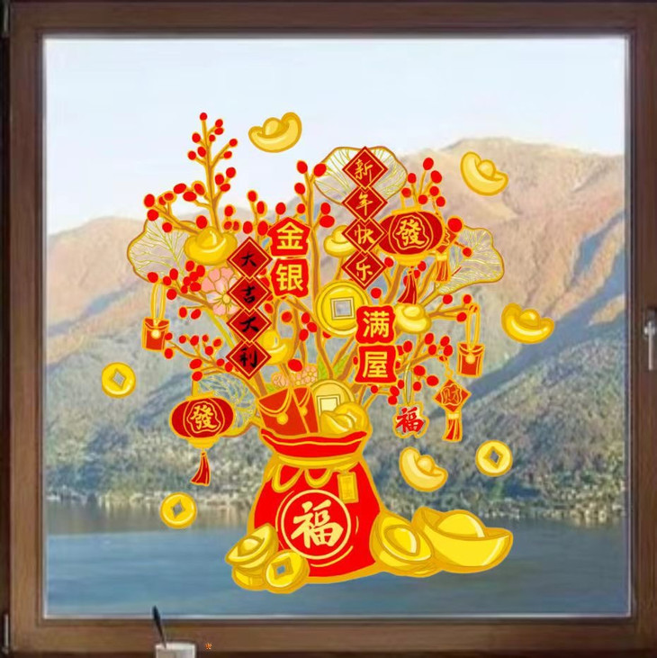 发财树静电窗花
