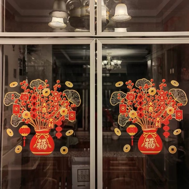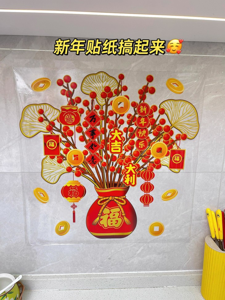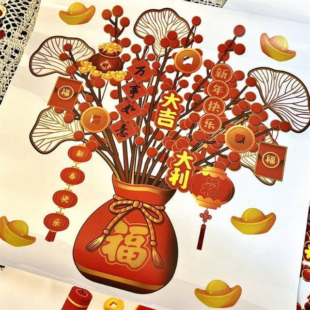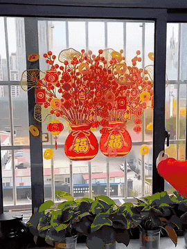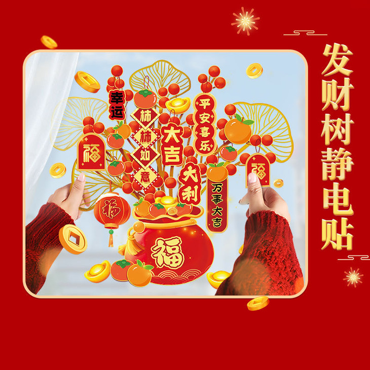 过年啦!🧨 发财树窗花 集美们快看过 过年家里需要年味 窗花静电贴是最好的装扮 静电膜沾水就能吸附