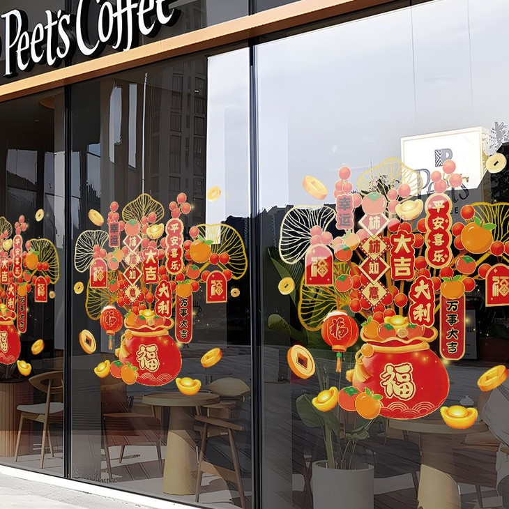 🔥🔥【9.9福利秒杀】【大尺寸发财树静电窗花2对4张】2对四张❗窗花一帖💪,年味就来了❗️2025年过年🧨【发财树静电窗花】谁贴谁发财🌟