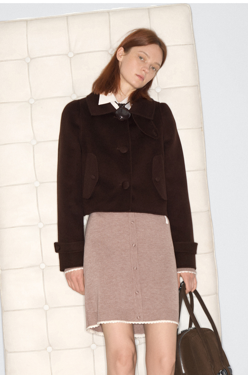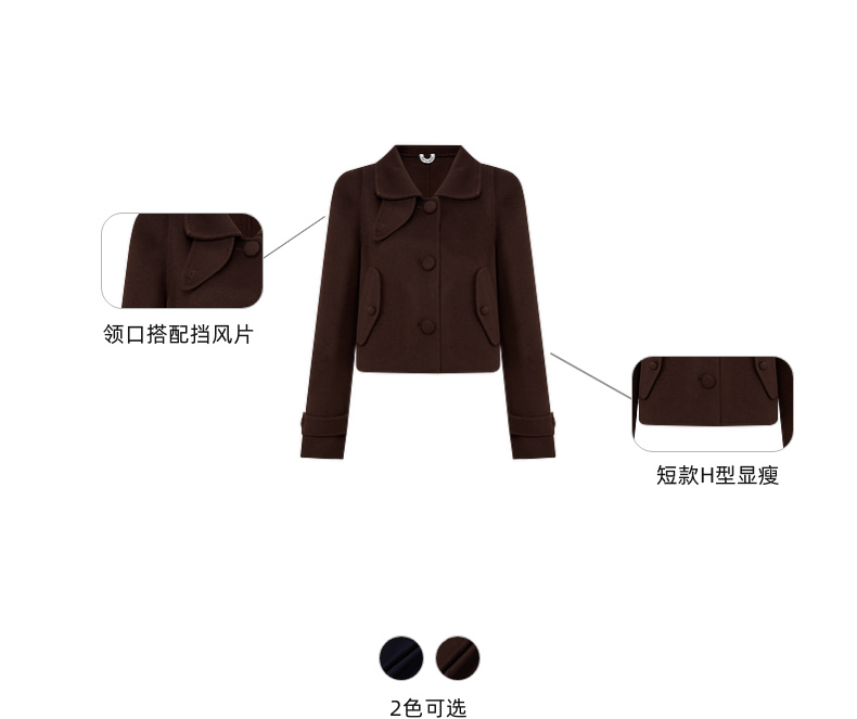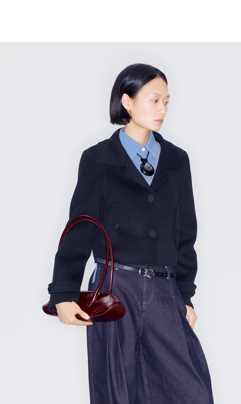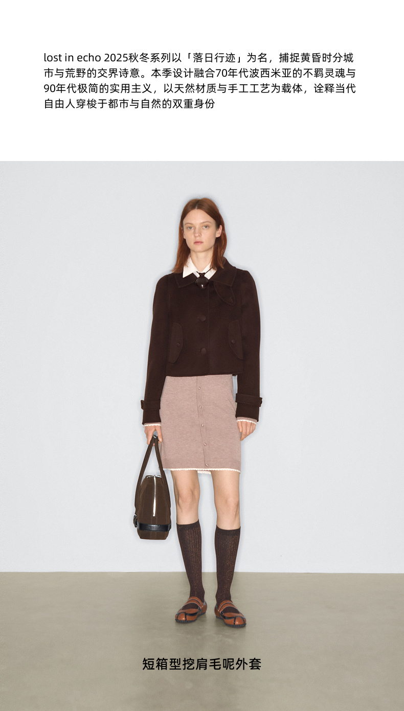 lost in echo2025早秋新款纯羊毛短箱型挖肩显瘦双面呢毛呢外套女