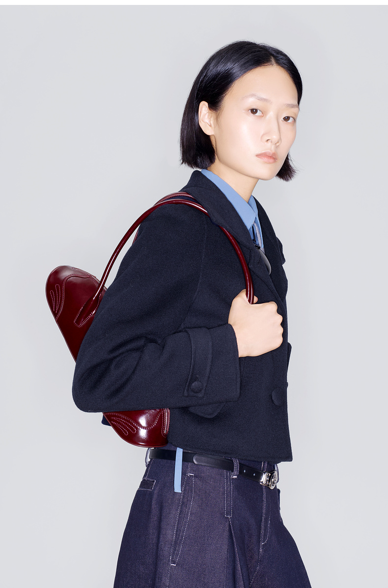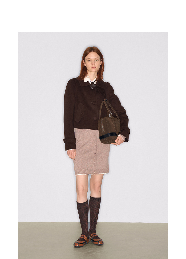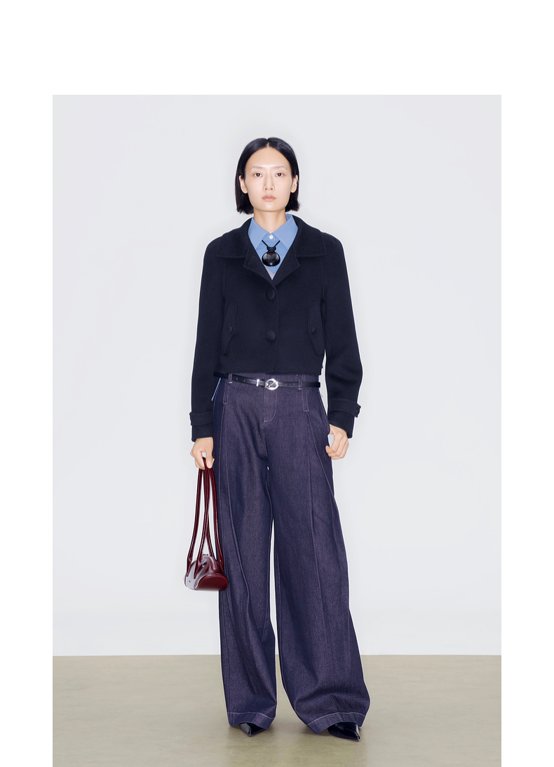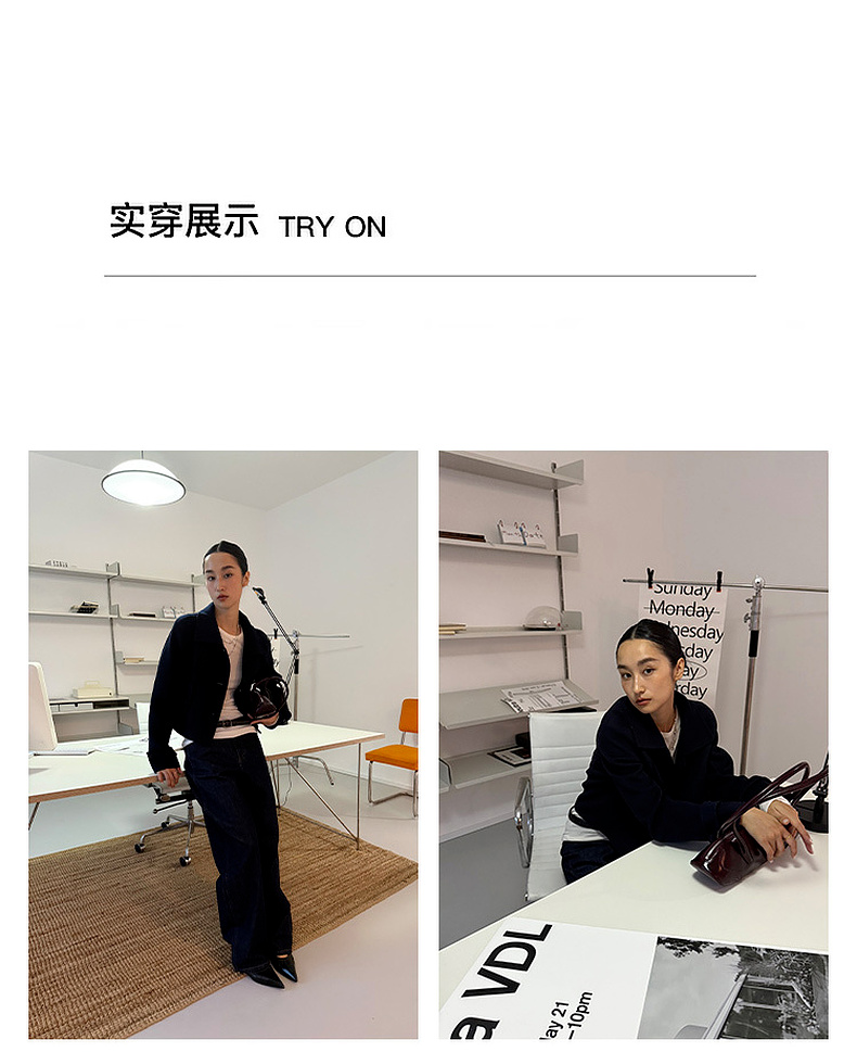 lost in echo2025早秋新款纯羊毛短箱型挖肩显瘦双面呢毛呢外套女