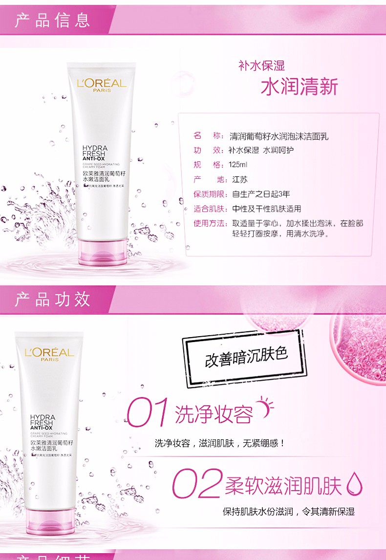 欧莱雅葡萄籽清润泡沫洁面膏125ml(5301058)