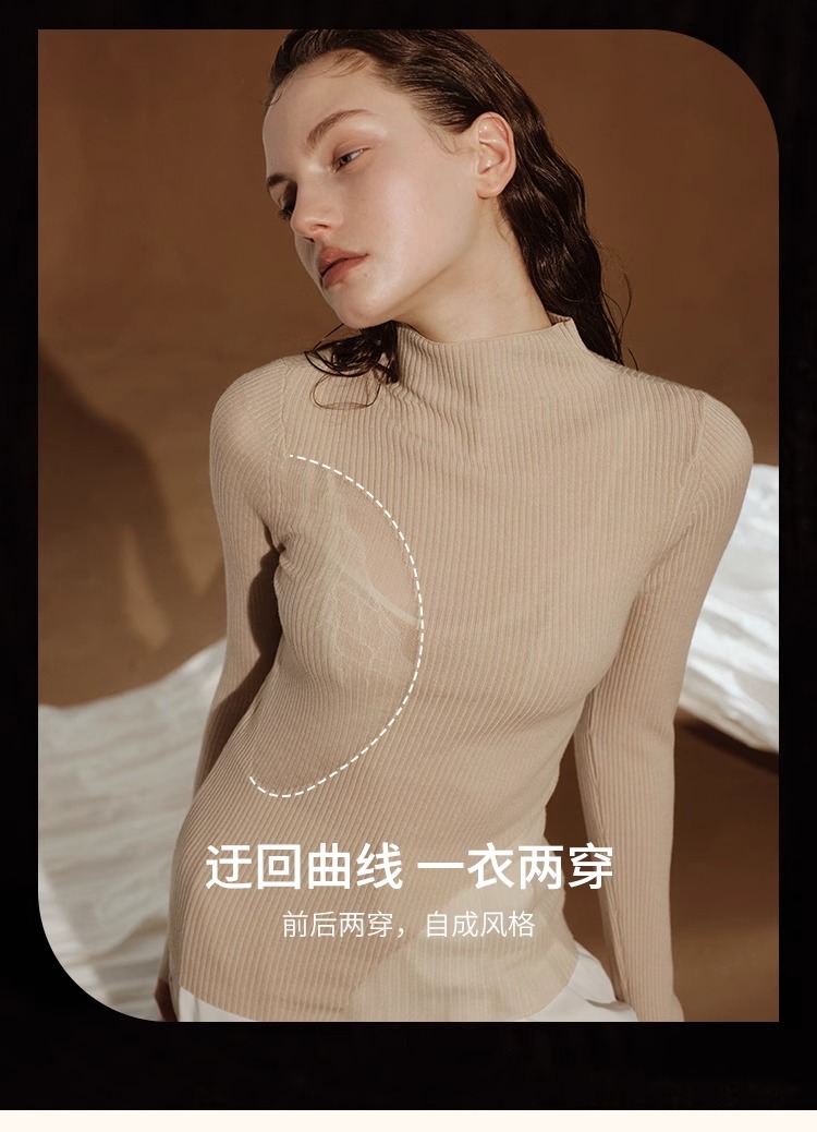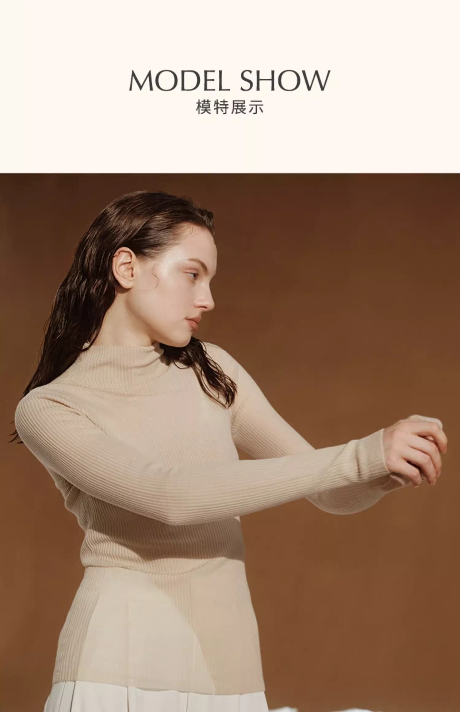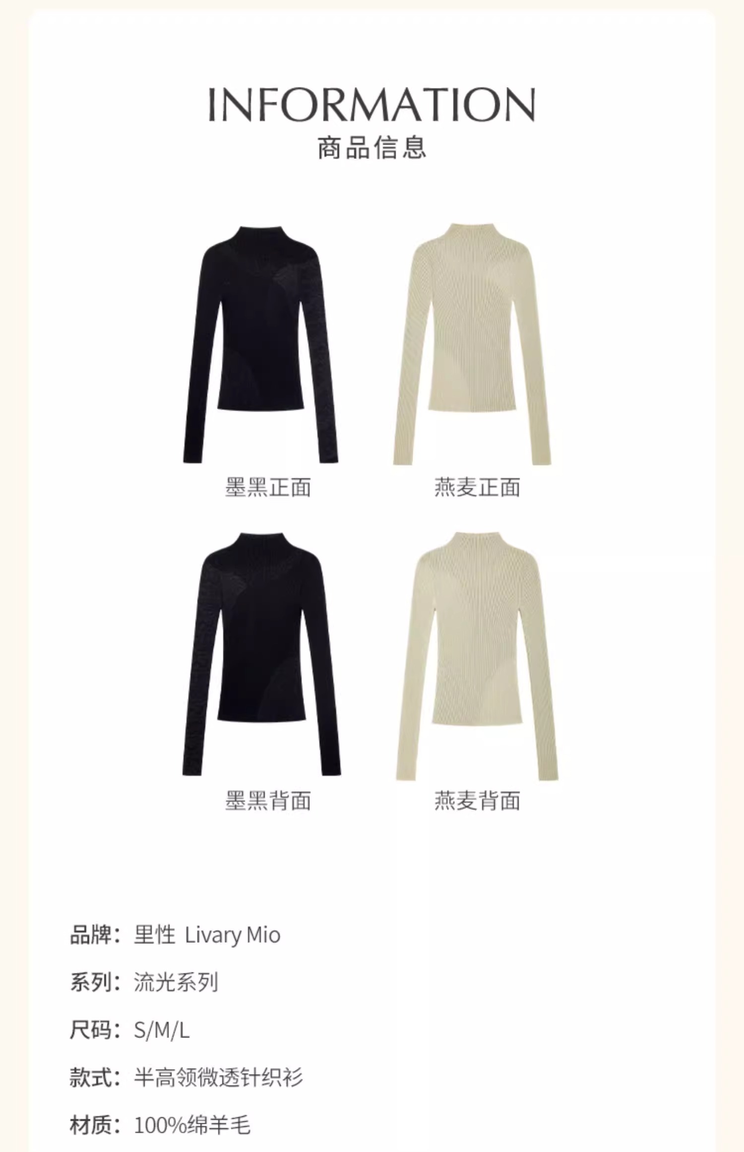 【明星同款】里性 LIVARY MIO 流光 绵羊毛打底衫半领性感微透套头女针织衫上衣