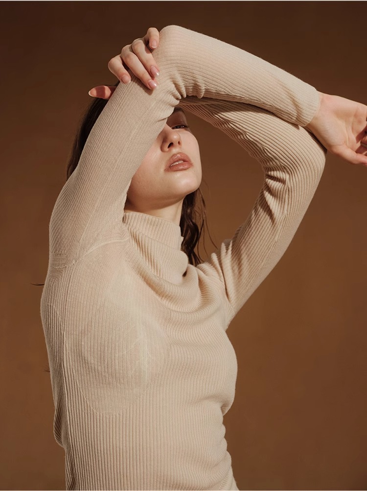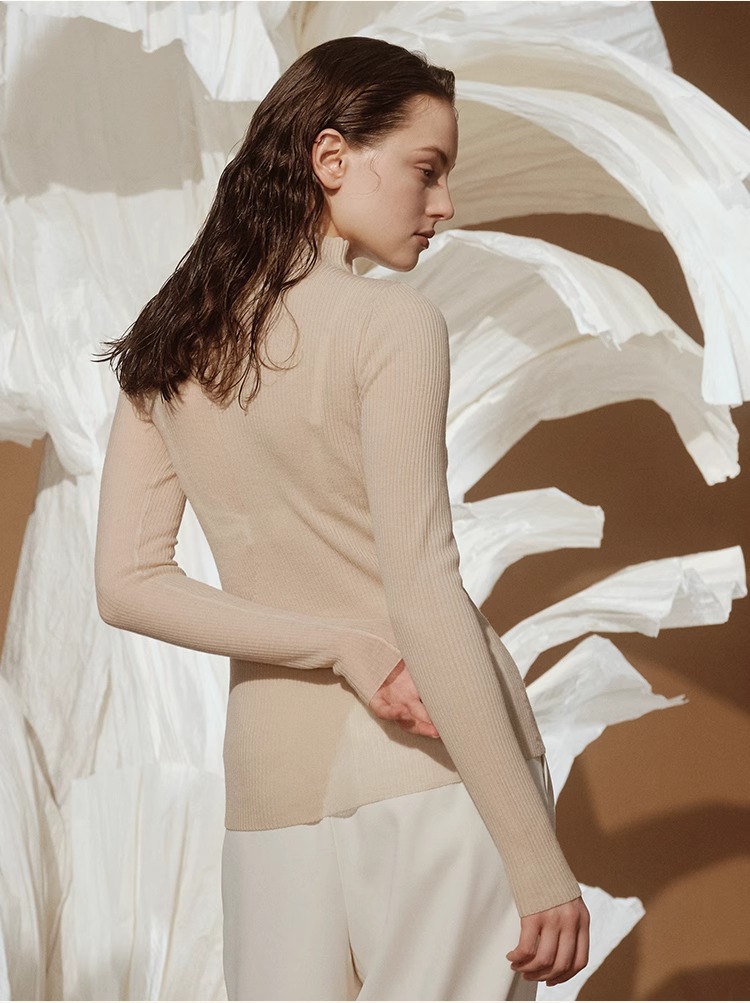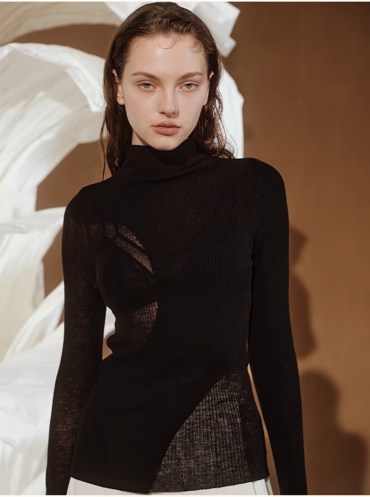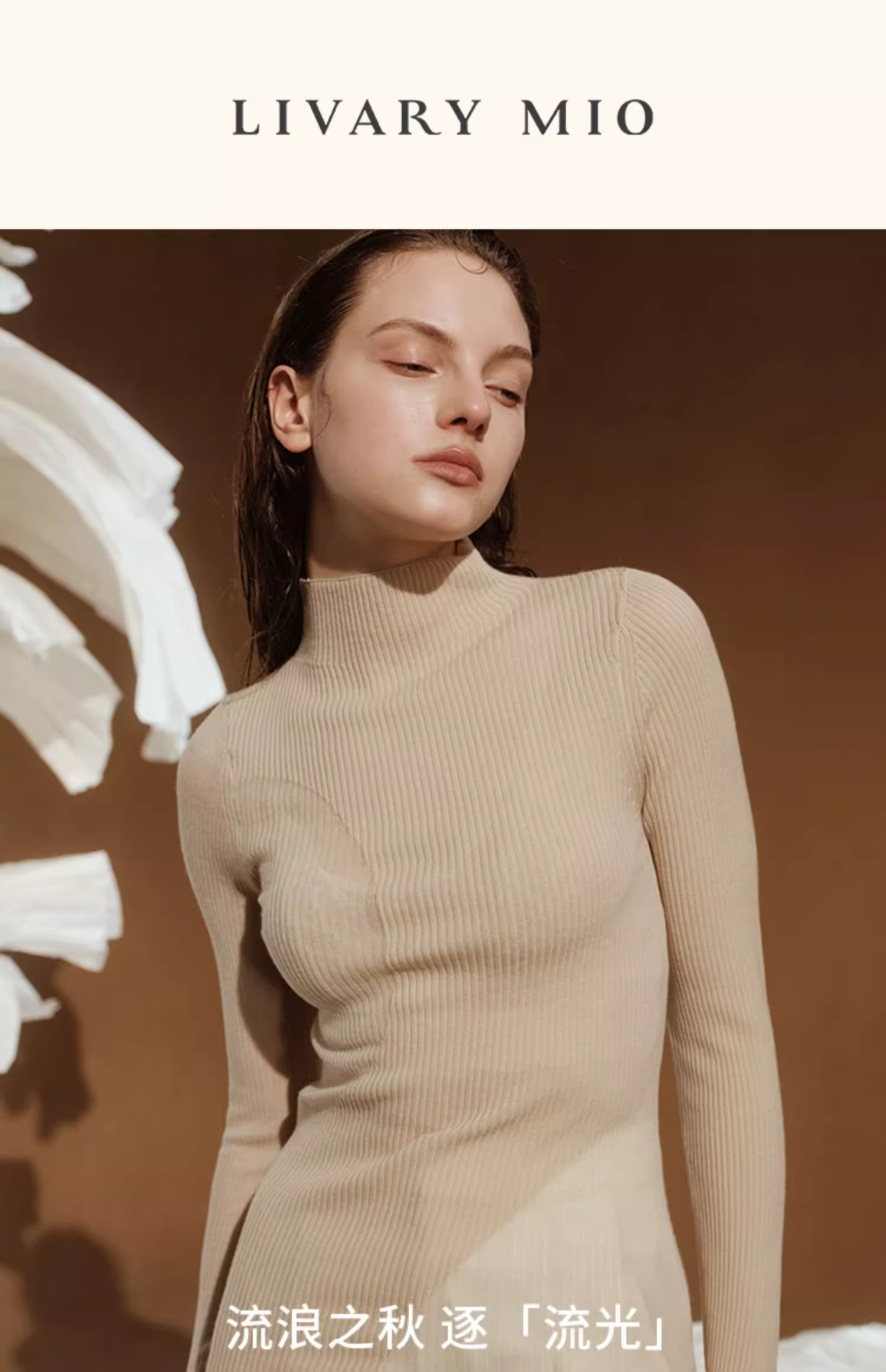【明星同款】里性 LIVARY MIO 流光 绵羊毛打底衫半领性感微透套头女针织衫上衣