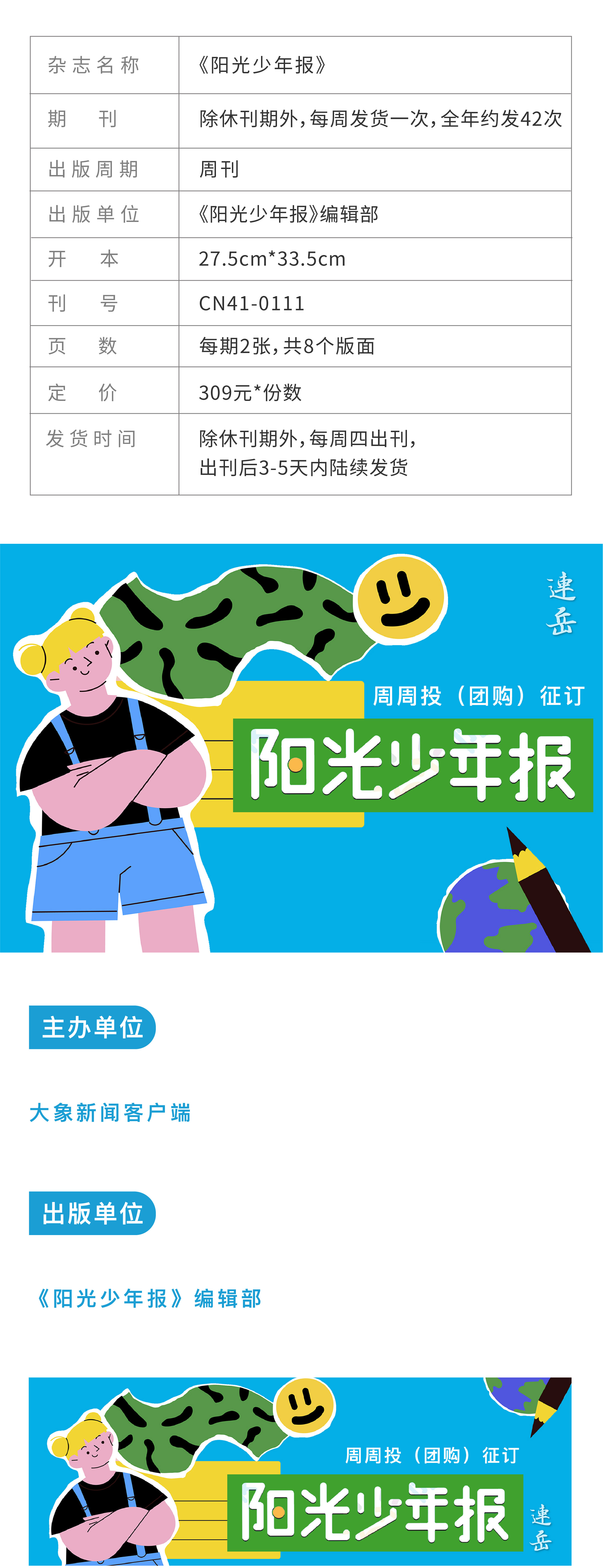《阳光少年报》周周投 团购(同一收货地址3份起)全年约发42次