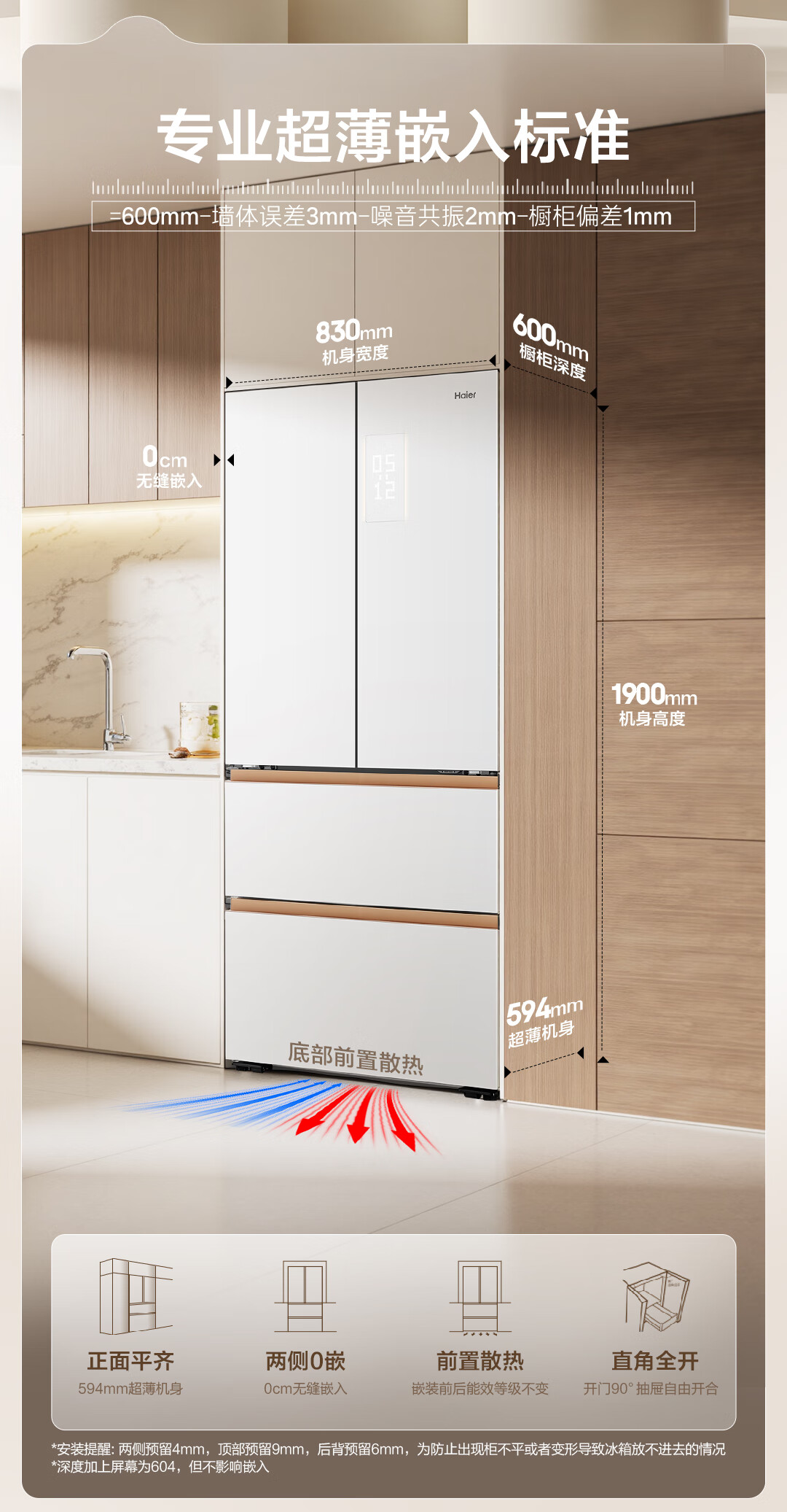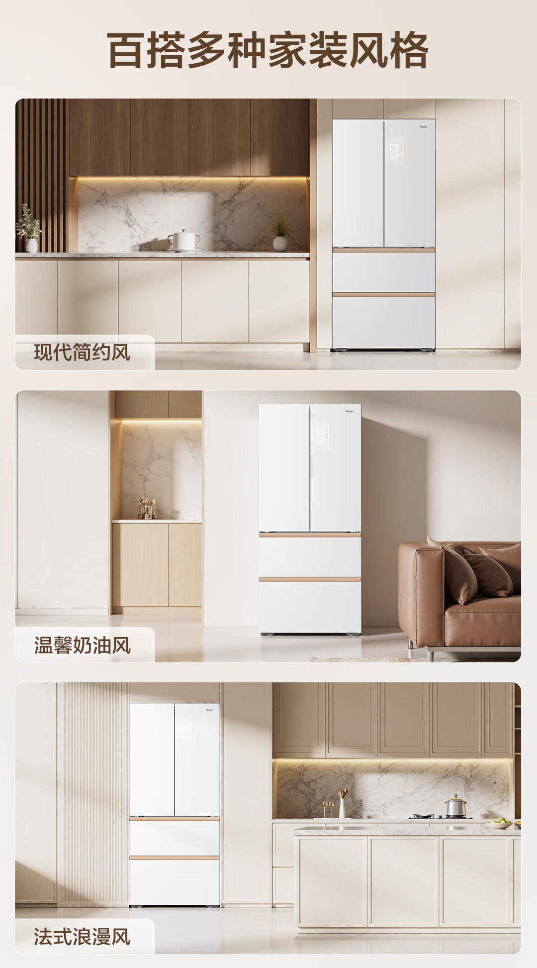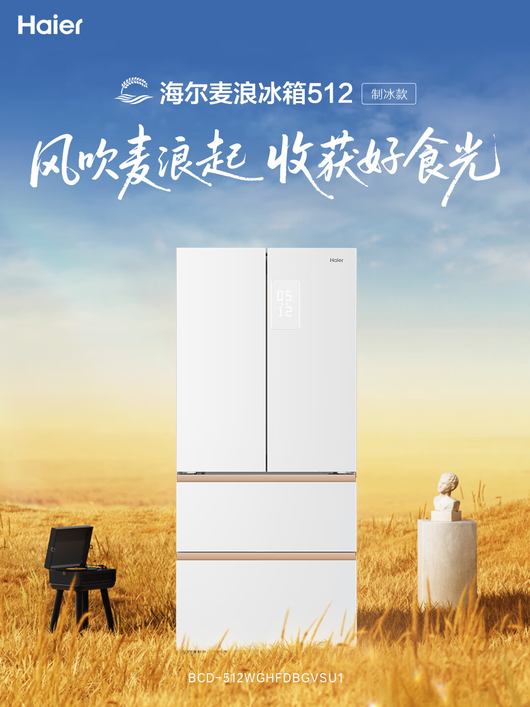 海尔(Haier)冰箱麦浪系列512升法式多门594mm专业超薄零嵌入式全空间保鲜全自动制冰干湿分储家用大容量电冰箱 麦浪系列+594mm专业超薄+全空间保鲜BCD-512WGHFDBGVSU1