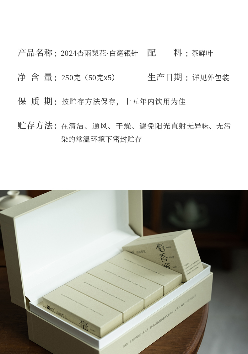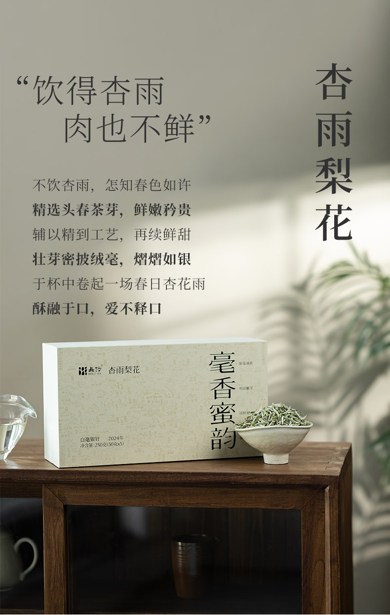 「北路白茶」杏雨梨花 福鼎白茶白毫银针明前茶叶特级2024新茶250g