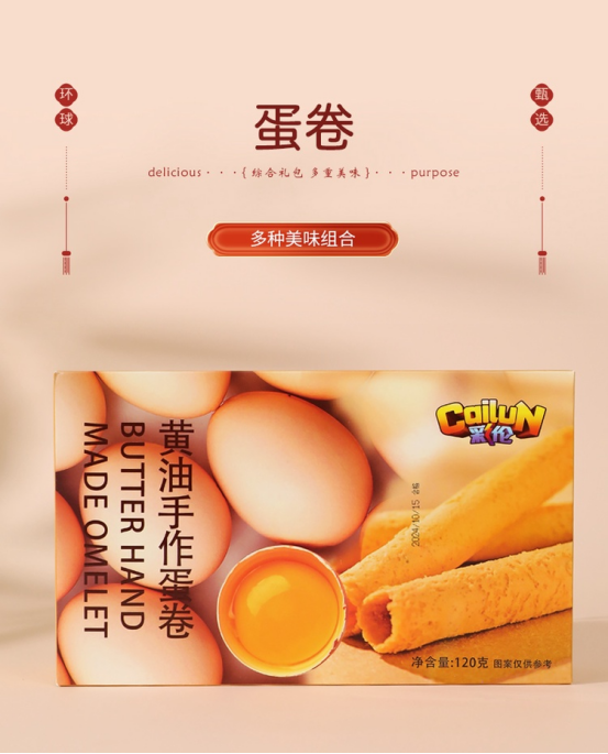 蛋卷 港式黄油手作蛋卷/黄油手作蛋卷包装随机发 蛋卷口感酥脆香甜,黄油香味浓郁 每一口都能感受到蛋香和黄油的 完美融合,甜而不腻,是下午茶的绝佳点心