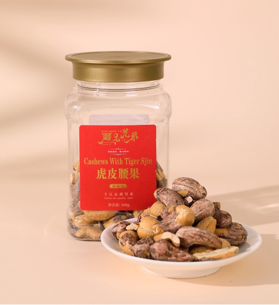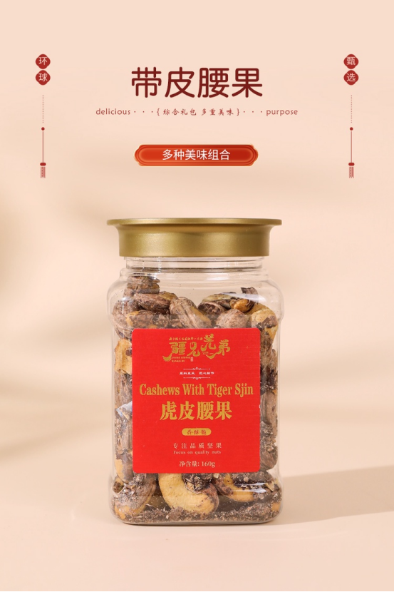 带皮腰果 带皮腰果口感香脆,外层带有 微微粗糙的果壳质感,内里 则是细腻的果肉,味道浓郁香甜 富有嚼劲,是健康零食的优选