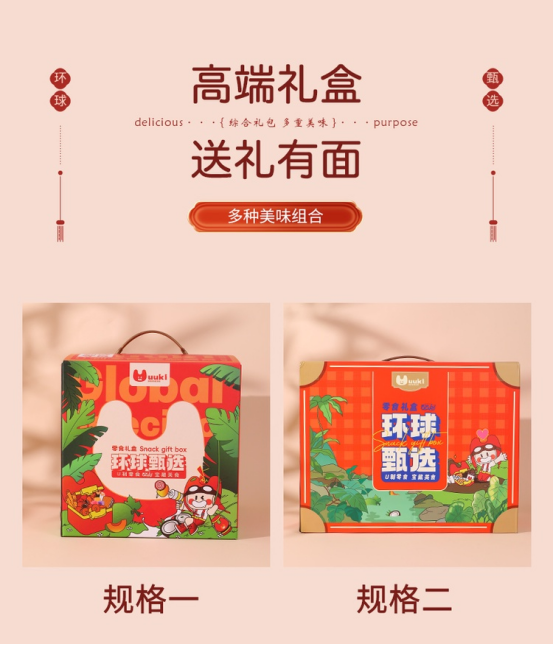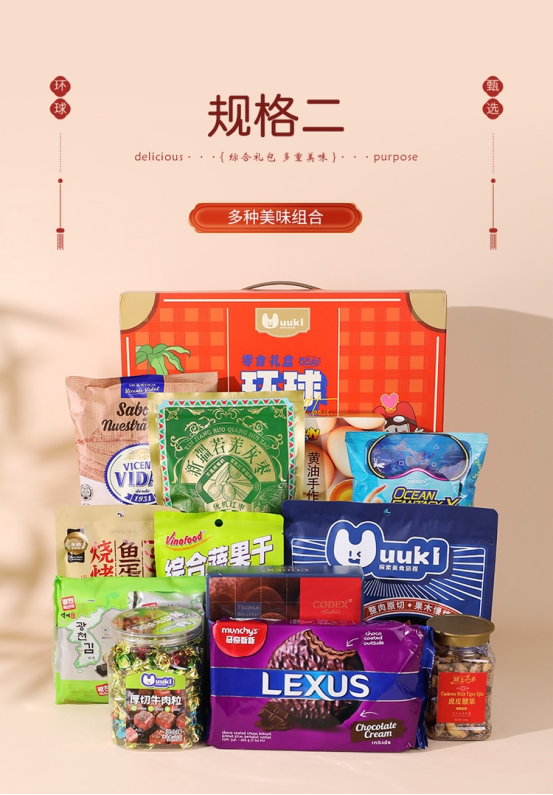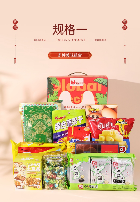 👍👍【UUKI环球甄选零食大礼包 】一次享受多种美味☀️2款礼盒可选🏆精美包装,鲜艳明亮的色调🥰,花样搭配,让你一次吃个够 增添节日氛围