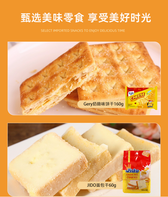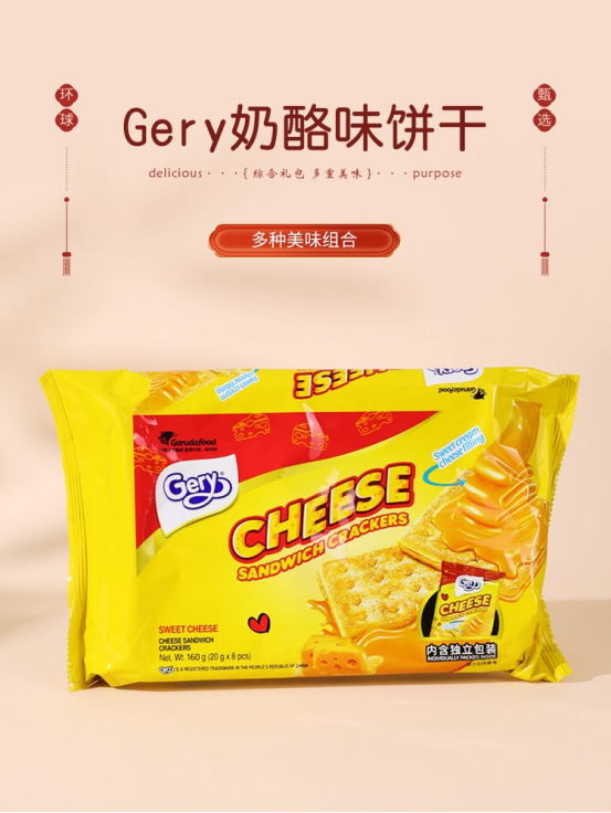 Gery奶酪味饼干 口感酥脆,奶酪风味浓郁 每一口都能感受到香浓的 奶酪在口中融化,香甜中 带着一丝咸香,令人回味无穷