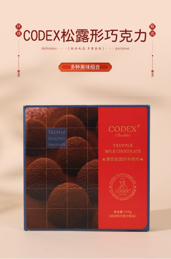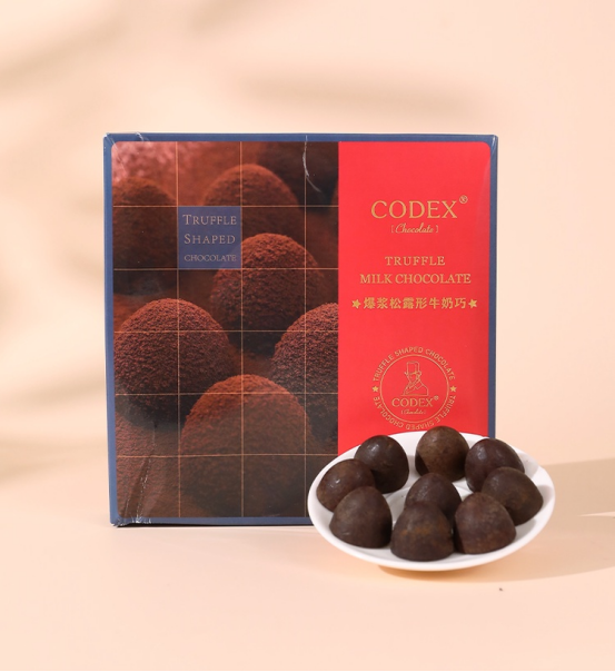 CODEX松露形巧克力 松露形巧克力口感细腻丝滑 浓郁的松露风味与香甜的 巧克力完美融合,入口即化